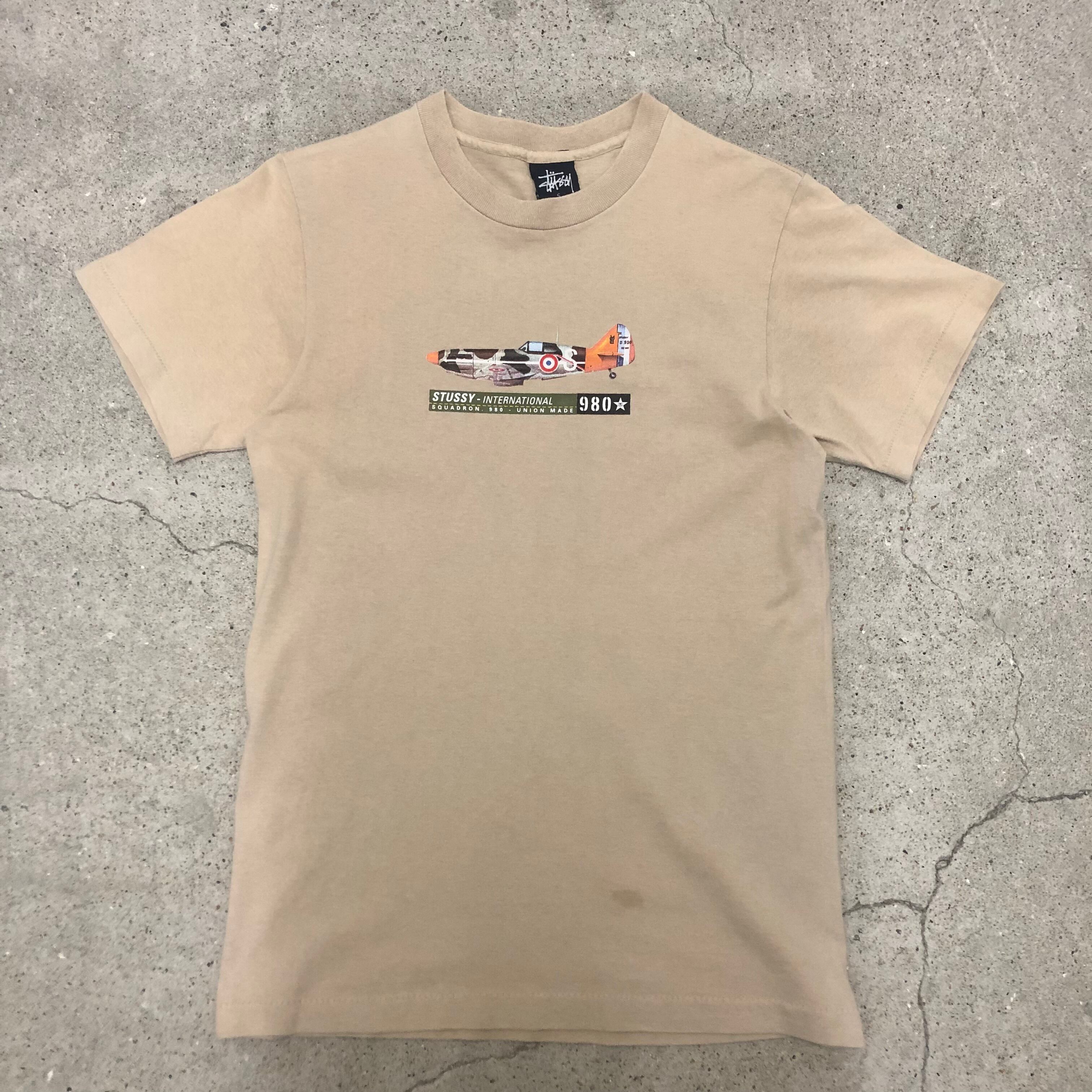 90s OLD STUSSY/D.520 print Tee/USA製/紺タグ/S/フランス空軍/飛行機/Tシャツ/ベージュ/ステューシー/オールドステューシー/古着/ヴィンテージ/アーカイブ