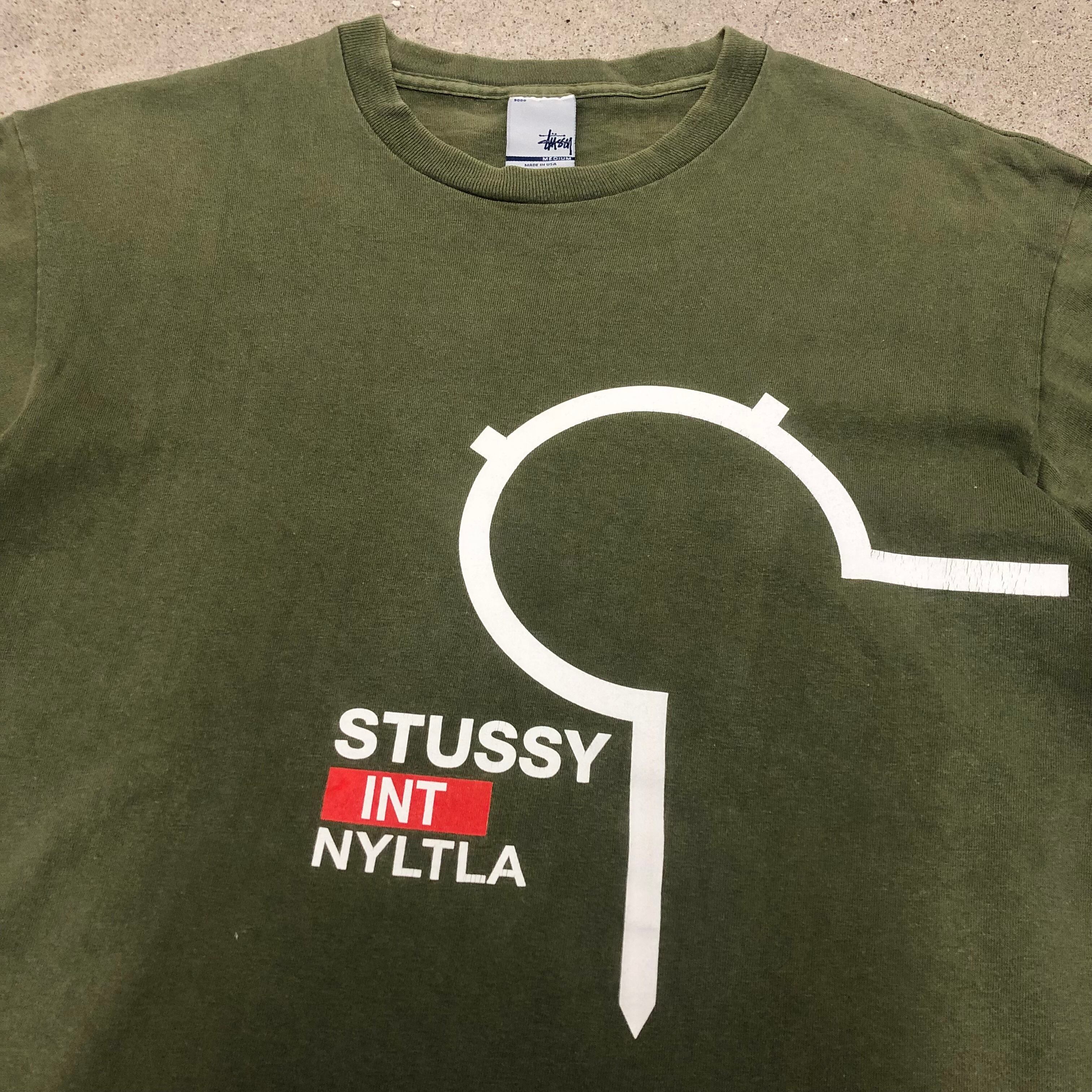 00s OLD STUSSY/NYLTLA print Tee/USA製/銀タグ/M/主要都市プリント/Tシャツ/カーキ/ステューシー/オールドステューシー/古着/ヴィンテージ/アーカイブ