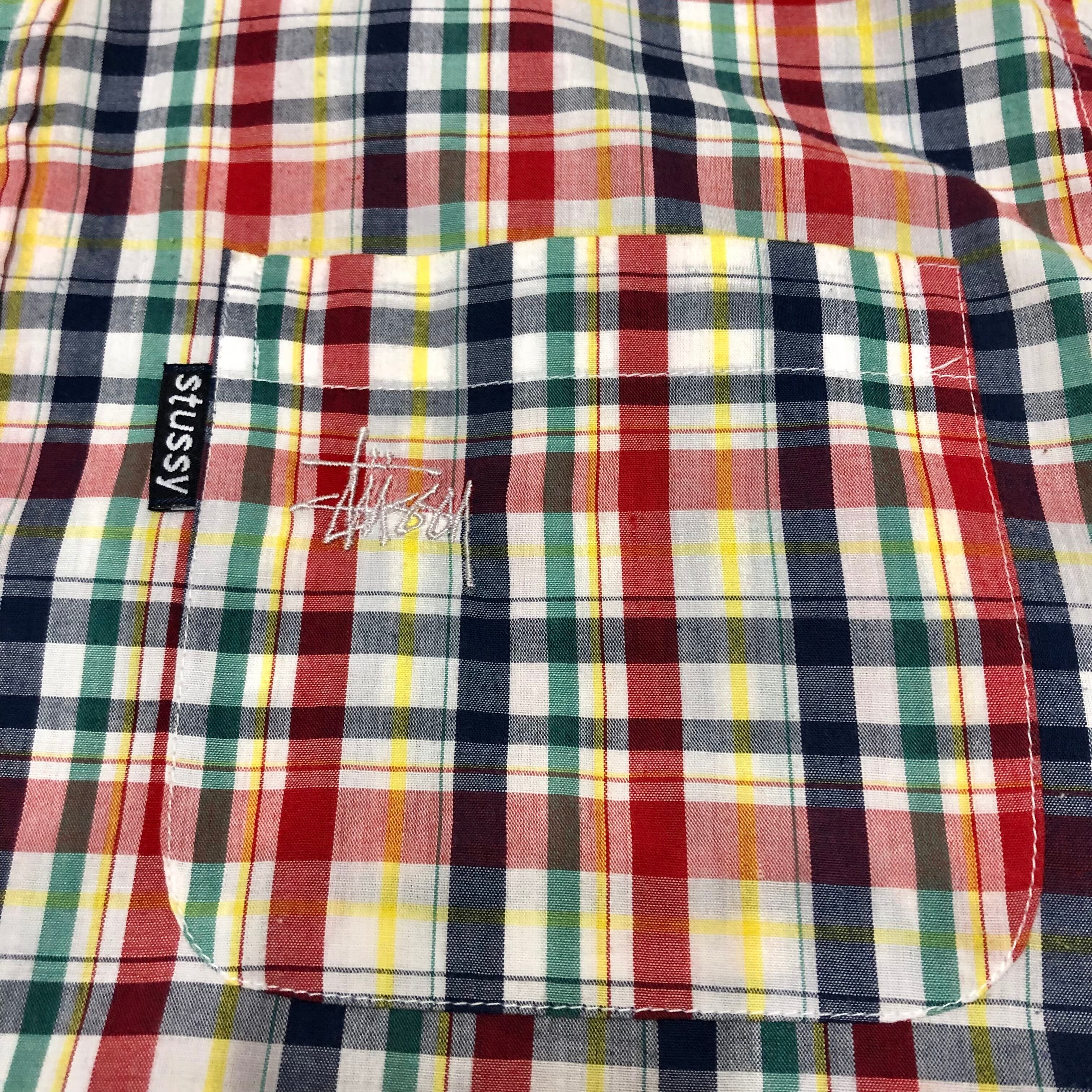 00s OLD STUSSY/Check BD S/S Shirt/USA製/銀タグ/L/ボタンダウンシャツ/半袖/マルチカラー/ステューシー/オールドステューシー/古着/ヴィンテージ/アーカイブ