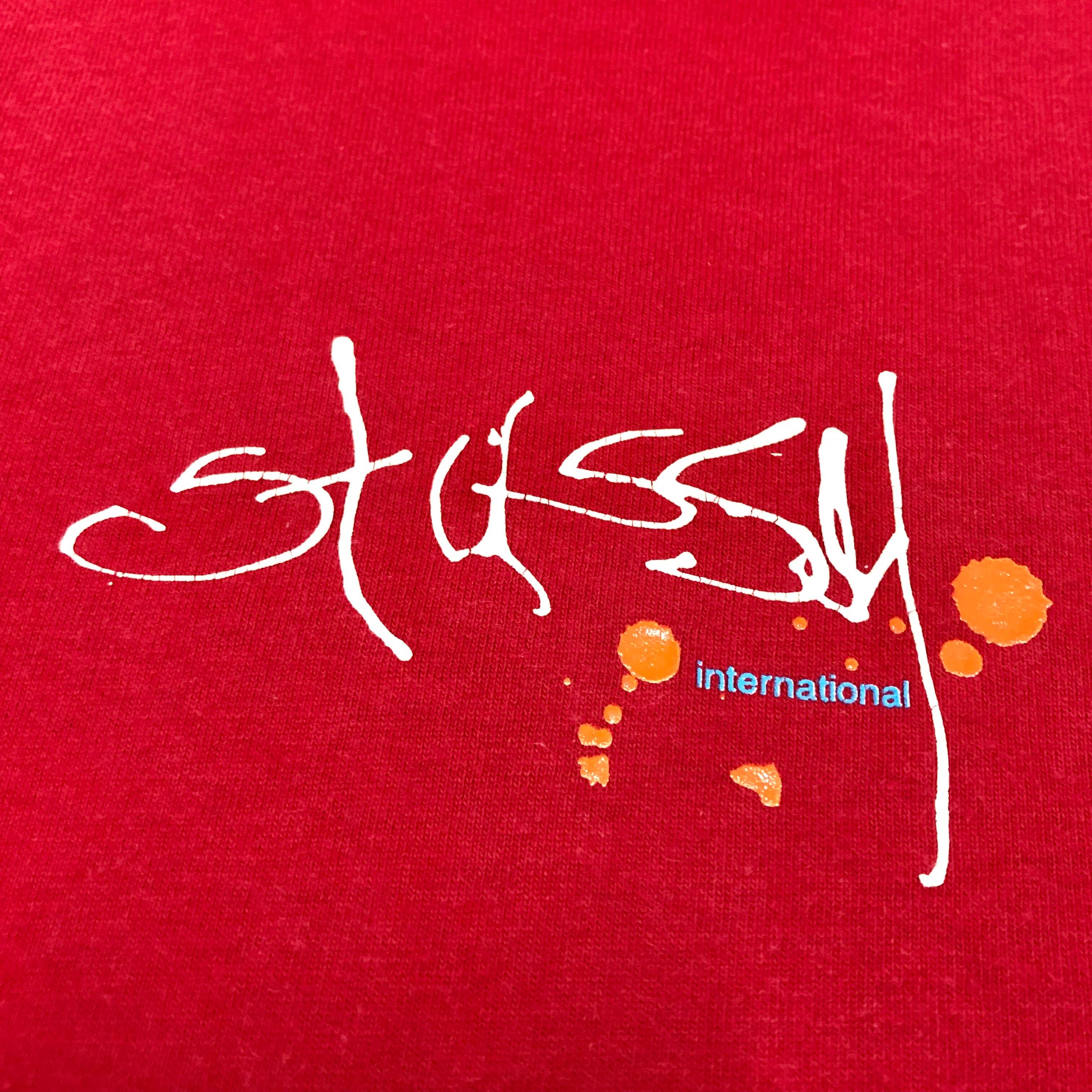 90s OLD STUSSY/Logo print Tee/USA製/紺タグ/S/ロゴプリント/Tシャツ/international/レッド/ステューシー/オールドステューシー/古着/ヴィンテージ/アーカイブ