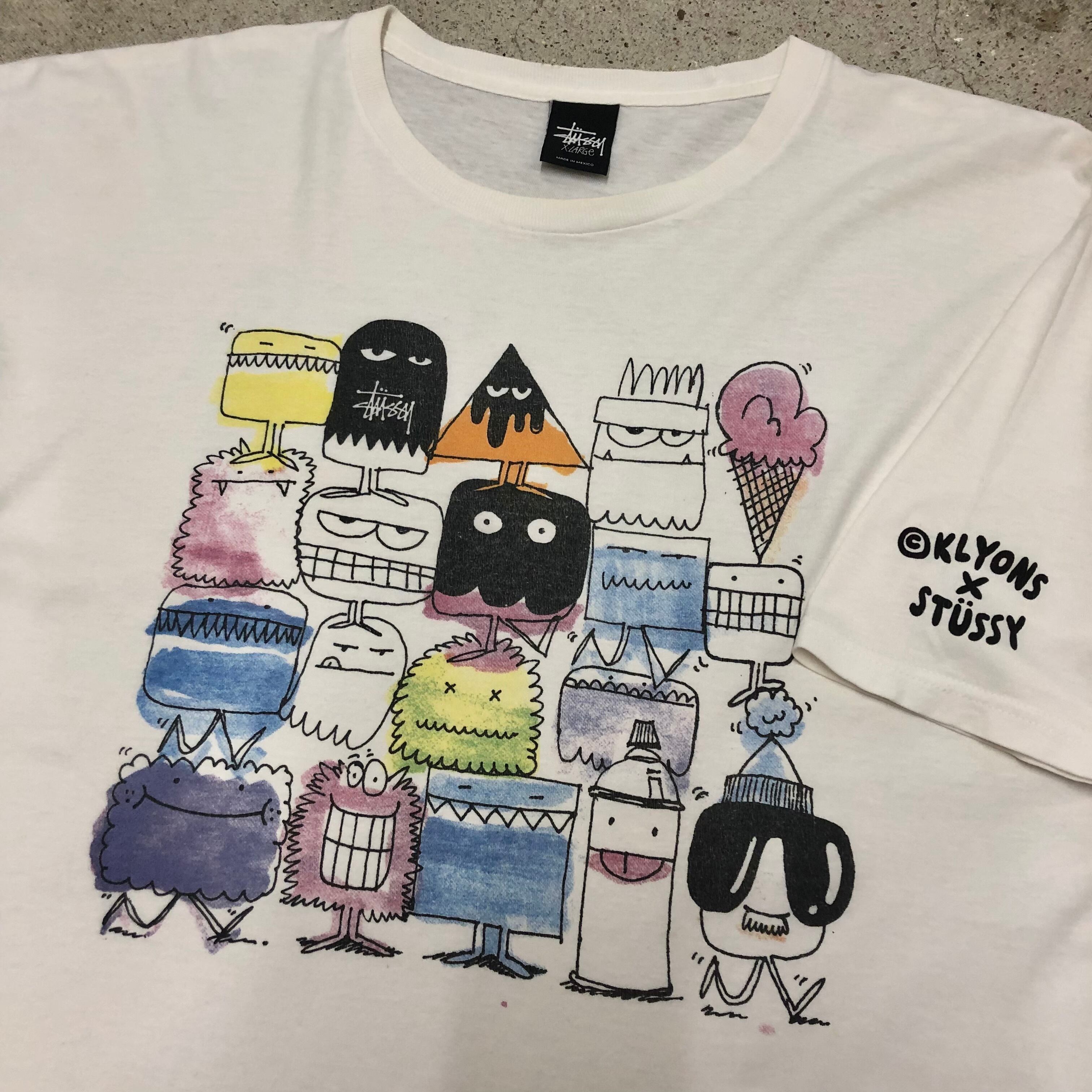 STUSSY×KLYONS/Monster print Tee/XL/ケヴィン・ライオンズコラボ/ハワイ/カカアコ/モンスタープリントTシャツ/ホワイト/ステューシー
