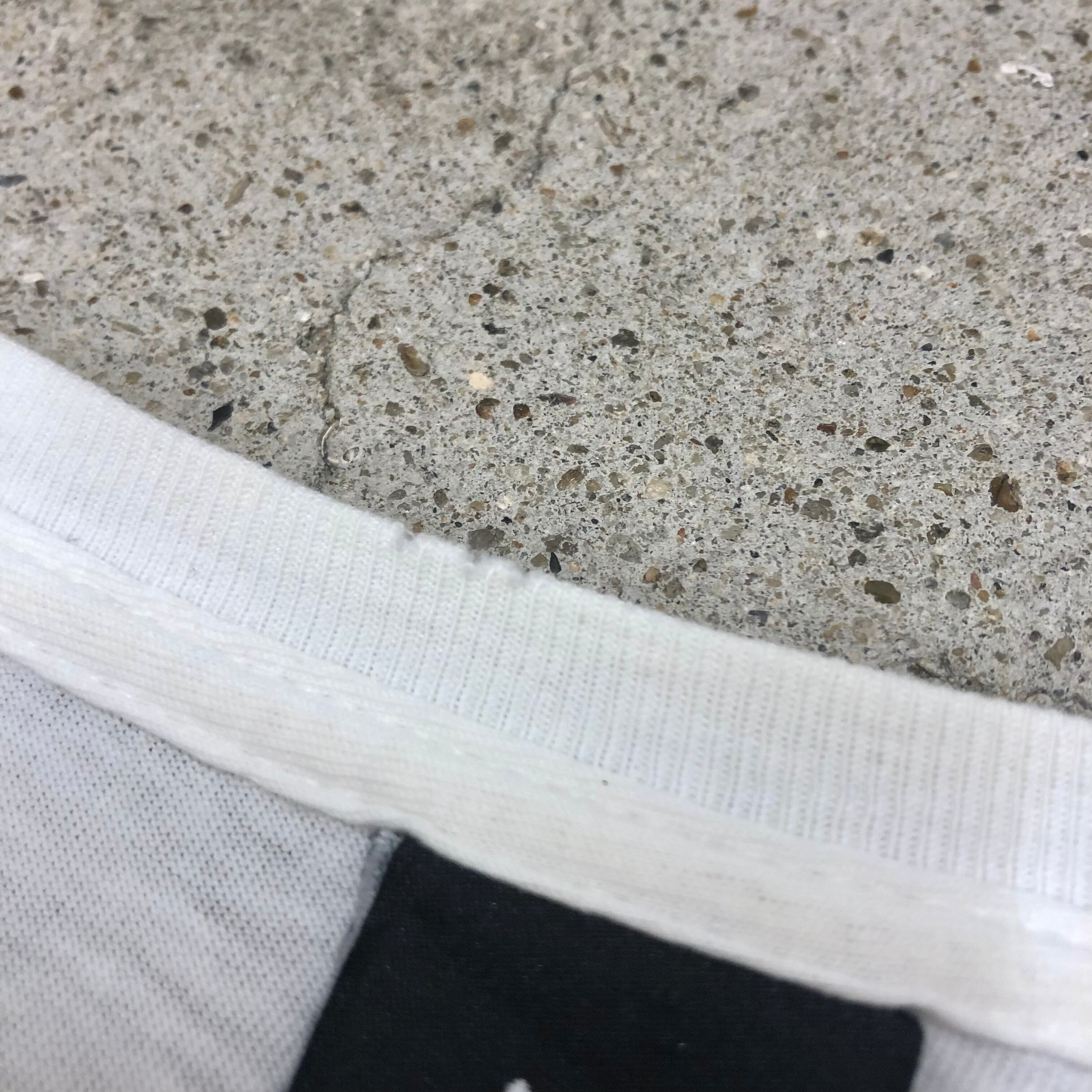 首周りに細かいダメージ、プリント下部分にシミがあります。