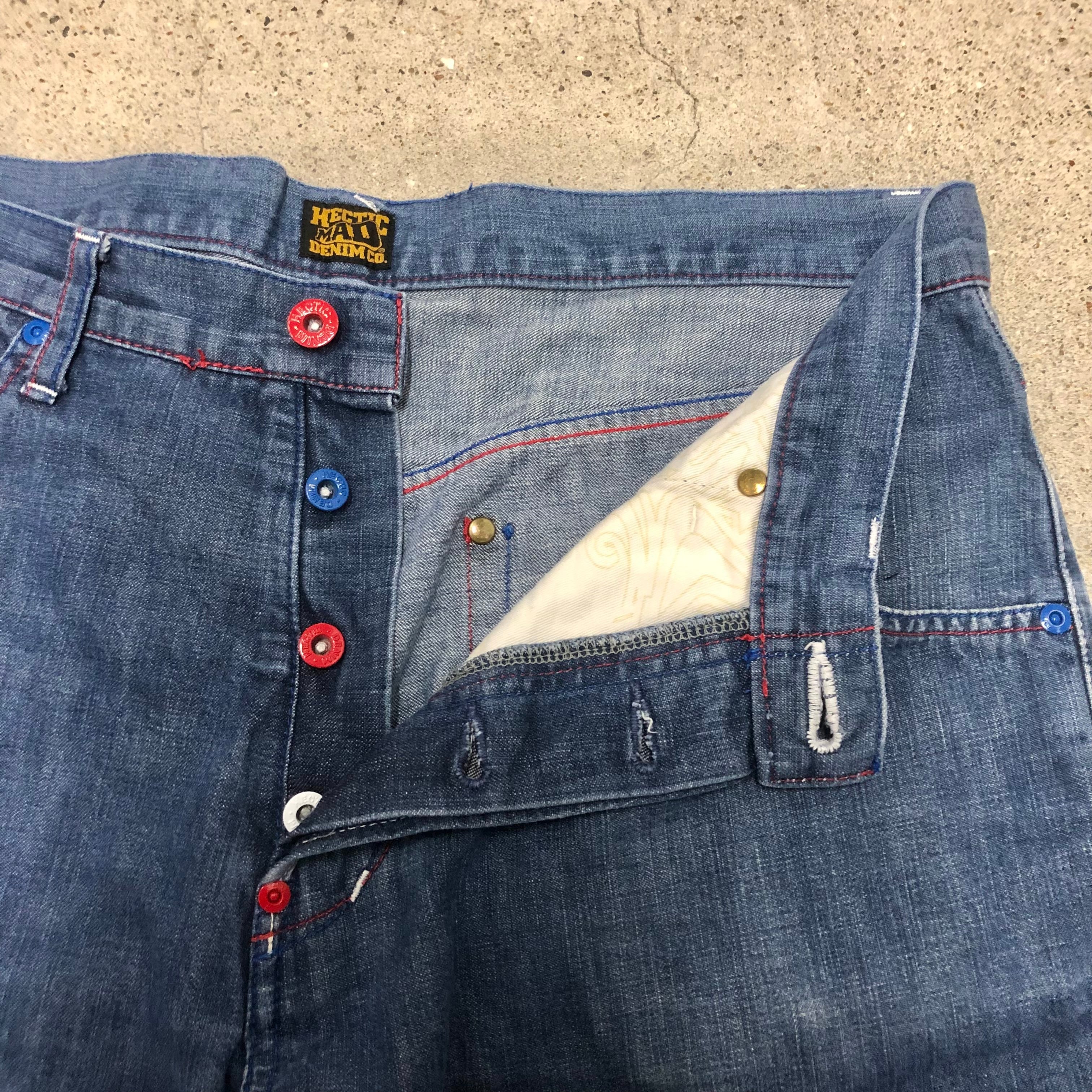00s Mad Hectic/Denim pants/M/デニムパンツ/MH/インディゴ/ロゴプリント/マッドヘクティク/HECTIC/MASTERPIECE/マスターピース/裏原/アーカイブ