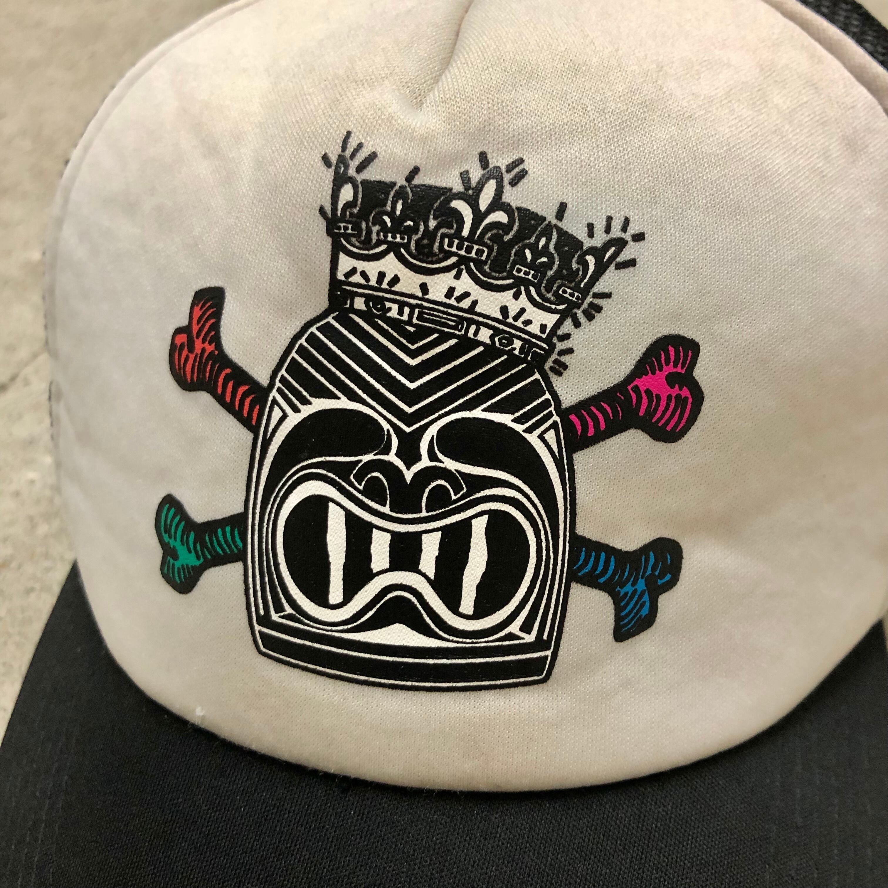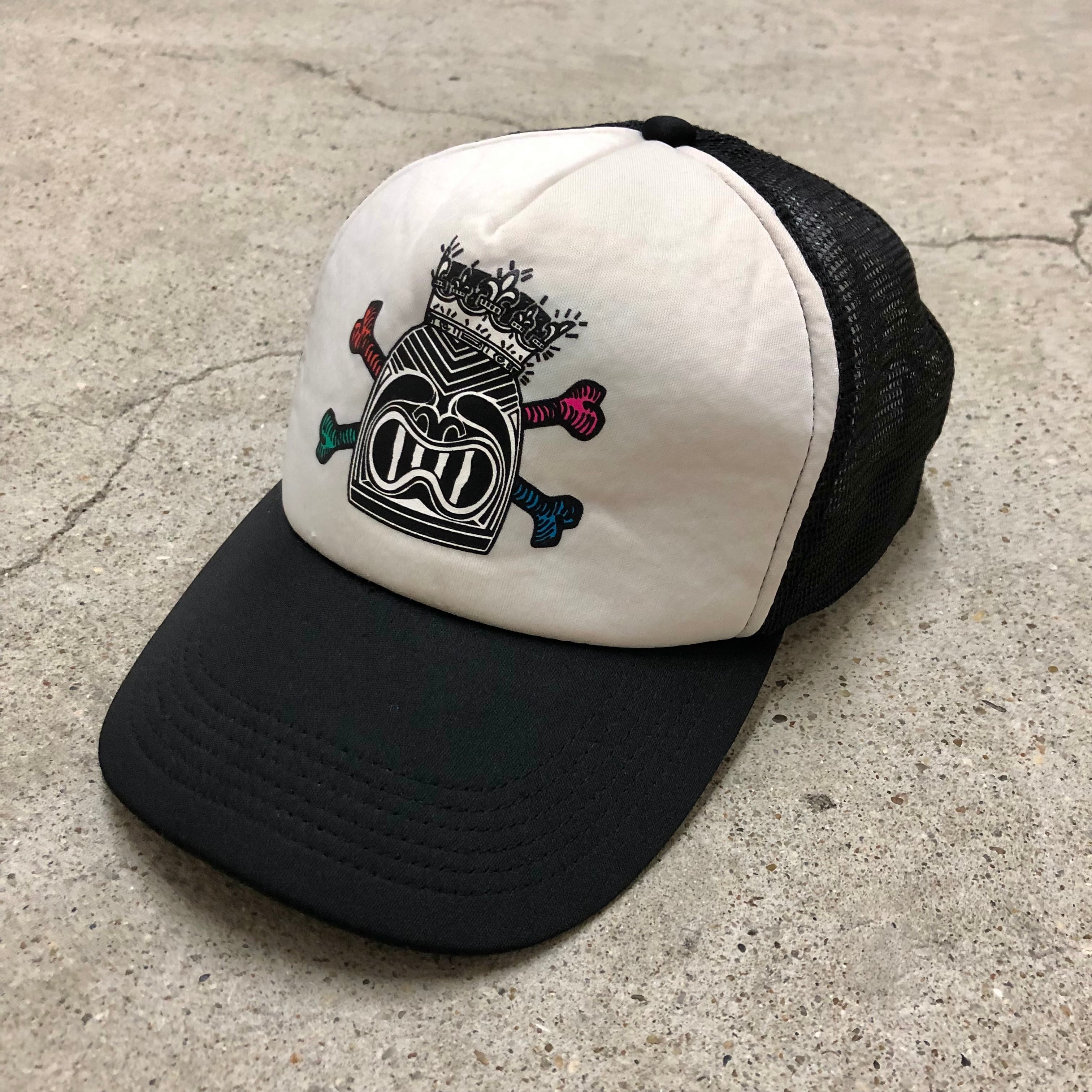 00s OLD STUSSY×LEILOW/Skull print Mesh Cap/Free/スカルプリント/HAWAII/メッシュキャップ/ブラック/レイロウ/ステューシー/オールドステューシー