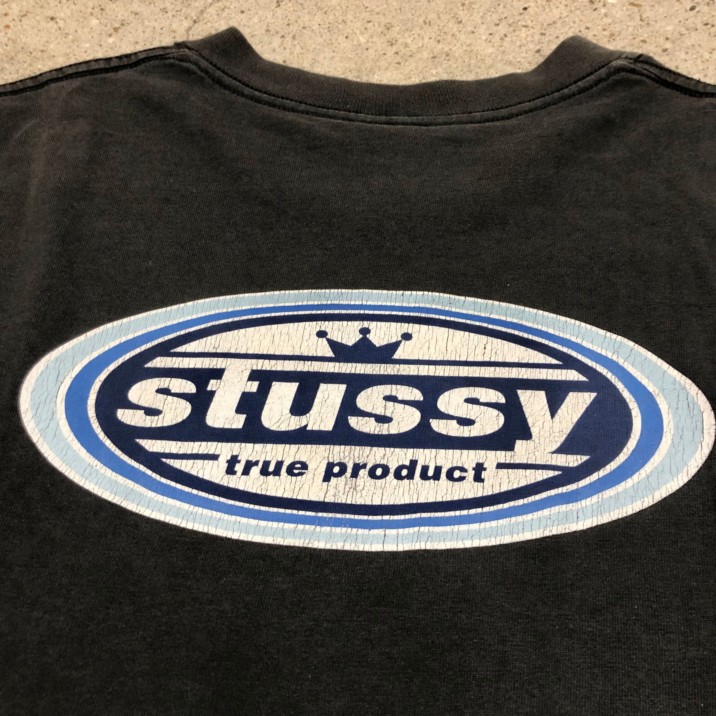 90s OLD STUSSY/True product Tee/USA製/赤青タグ/M/ロゴプリントTシャツ/両面プリント/ブラック/ステューシー/オールドステューシー/古着/ヴィンテージ/アーカイブ