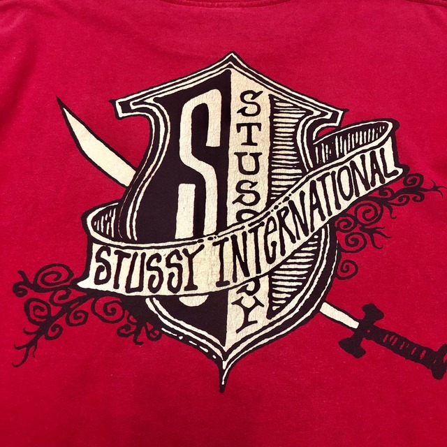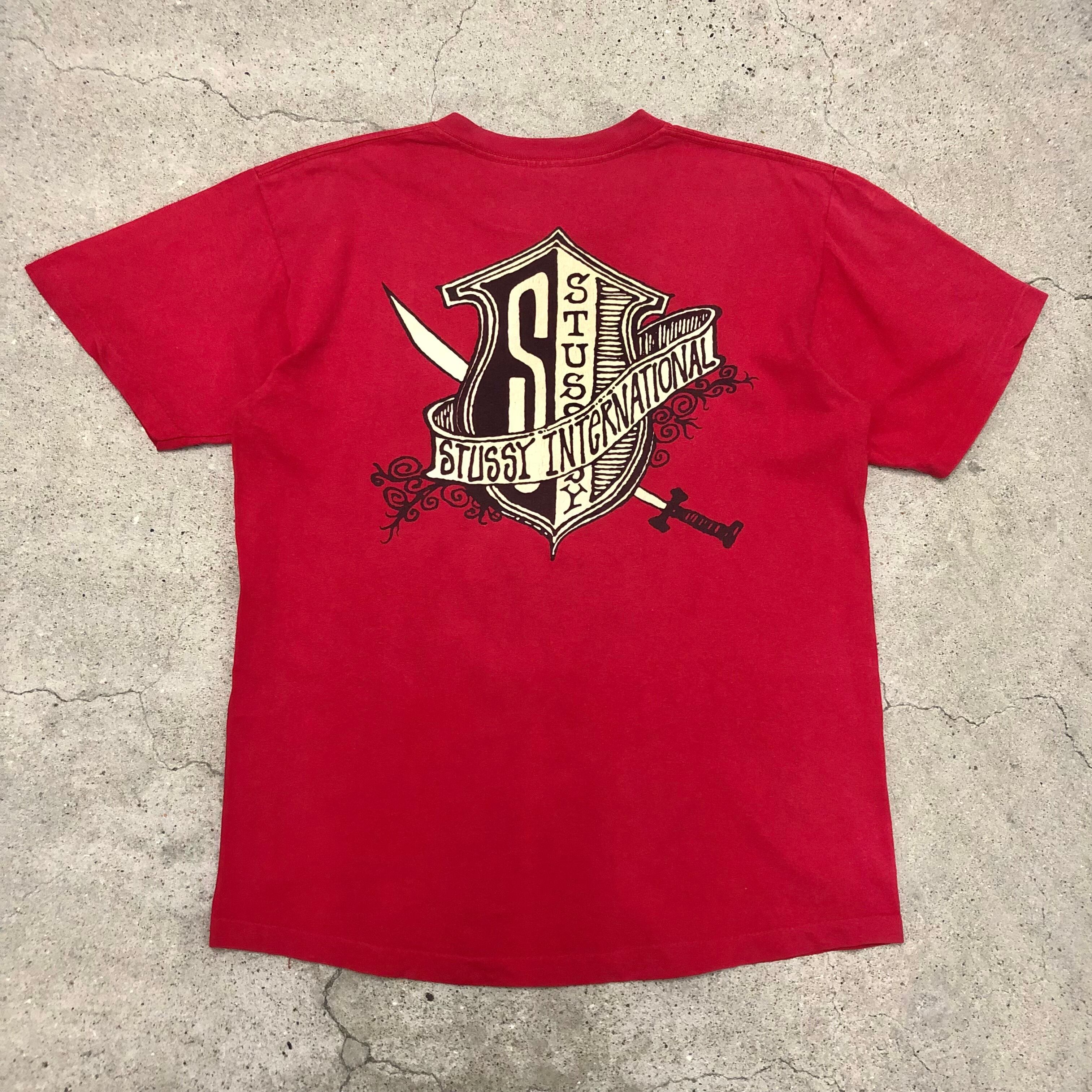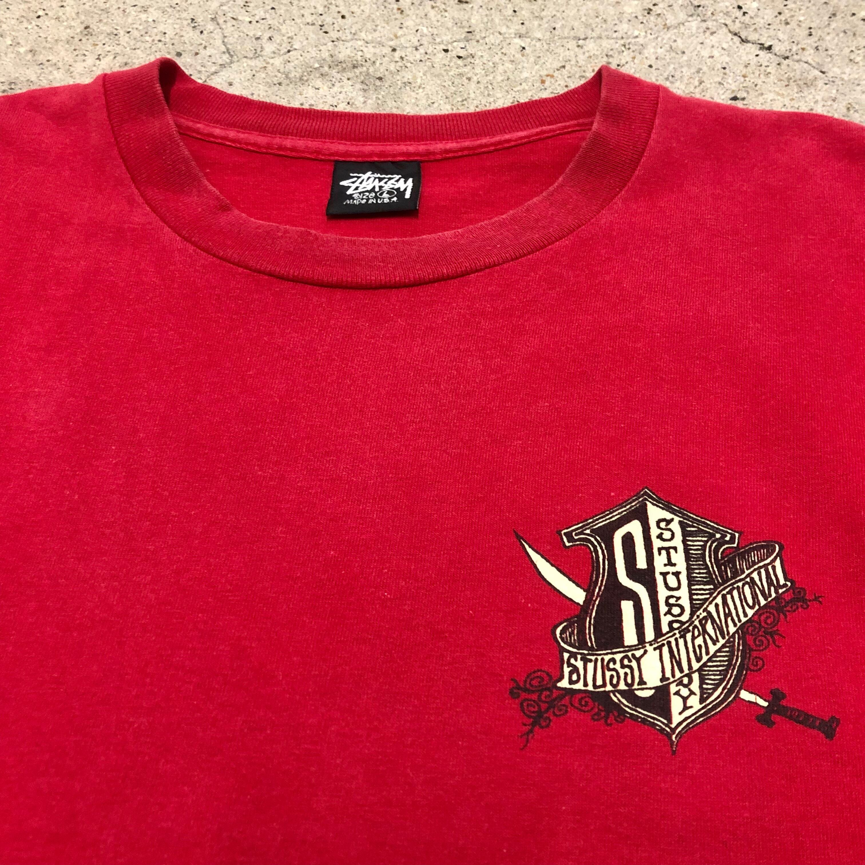 80~90s OLD STUSSY/Logo print Tee/USA製/黒タグ/L/プリントTシャツ/レッド/ステューシー/オールドステューシー/古着/ヴィンテージ/アーカイブ