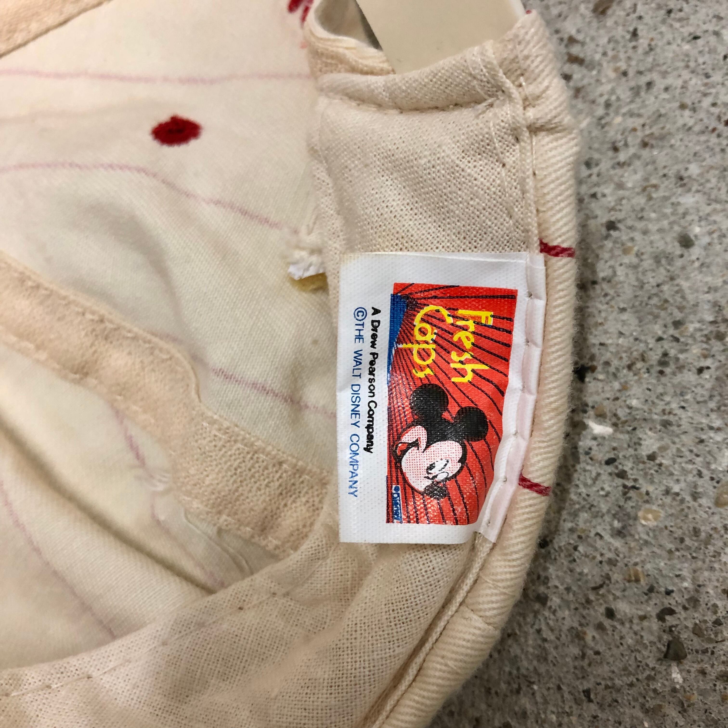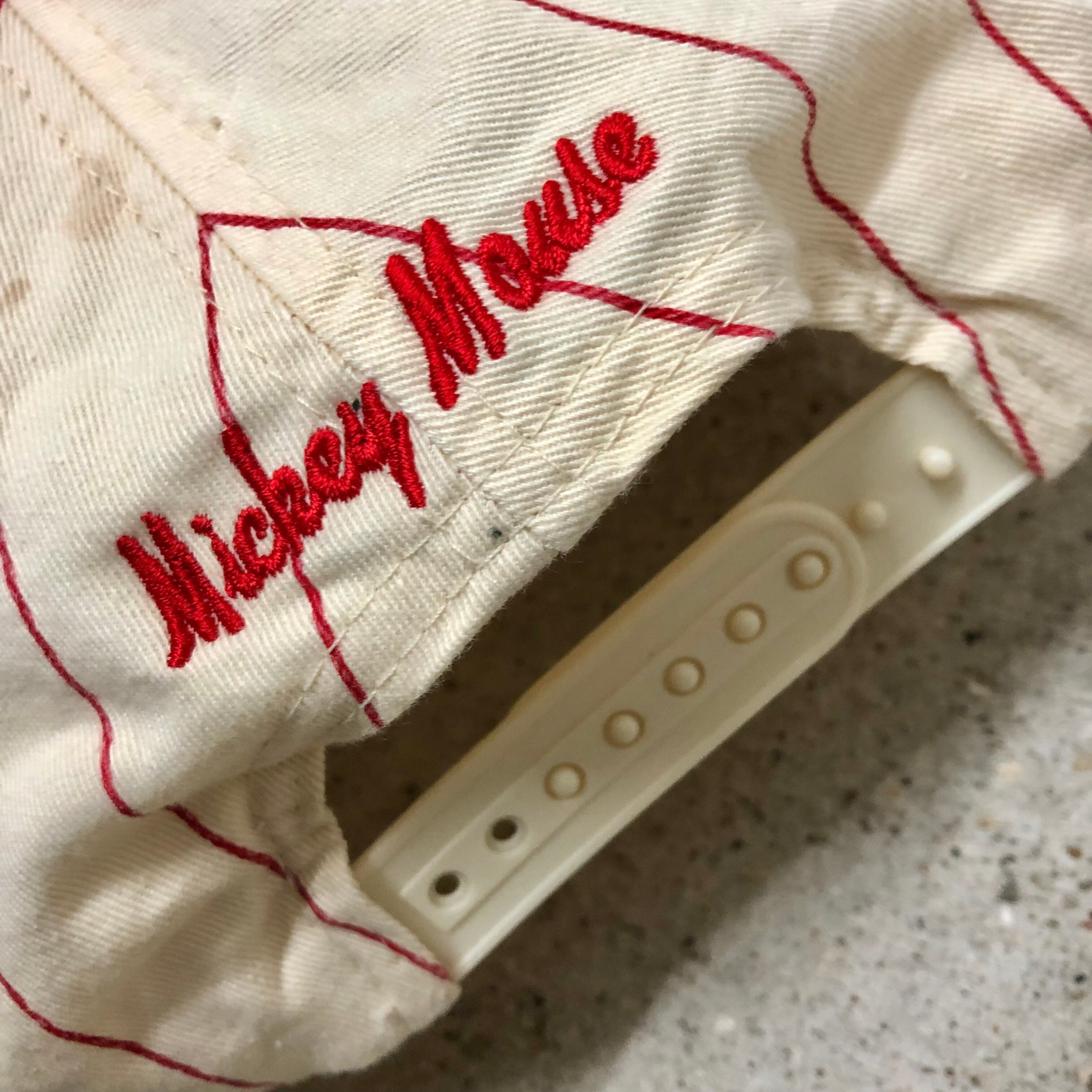 90~00s Disney/Mickey snapback cap/Free/ミッキー/スナップバックキャップ/ストライプ/クリーム/レッド/ディズニー/キャラクター/帽子/古着/ヴィンテージ