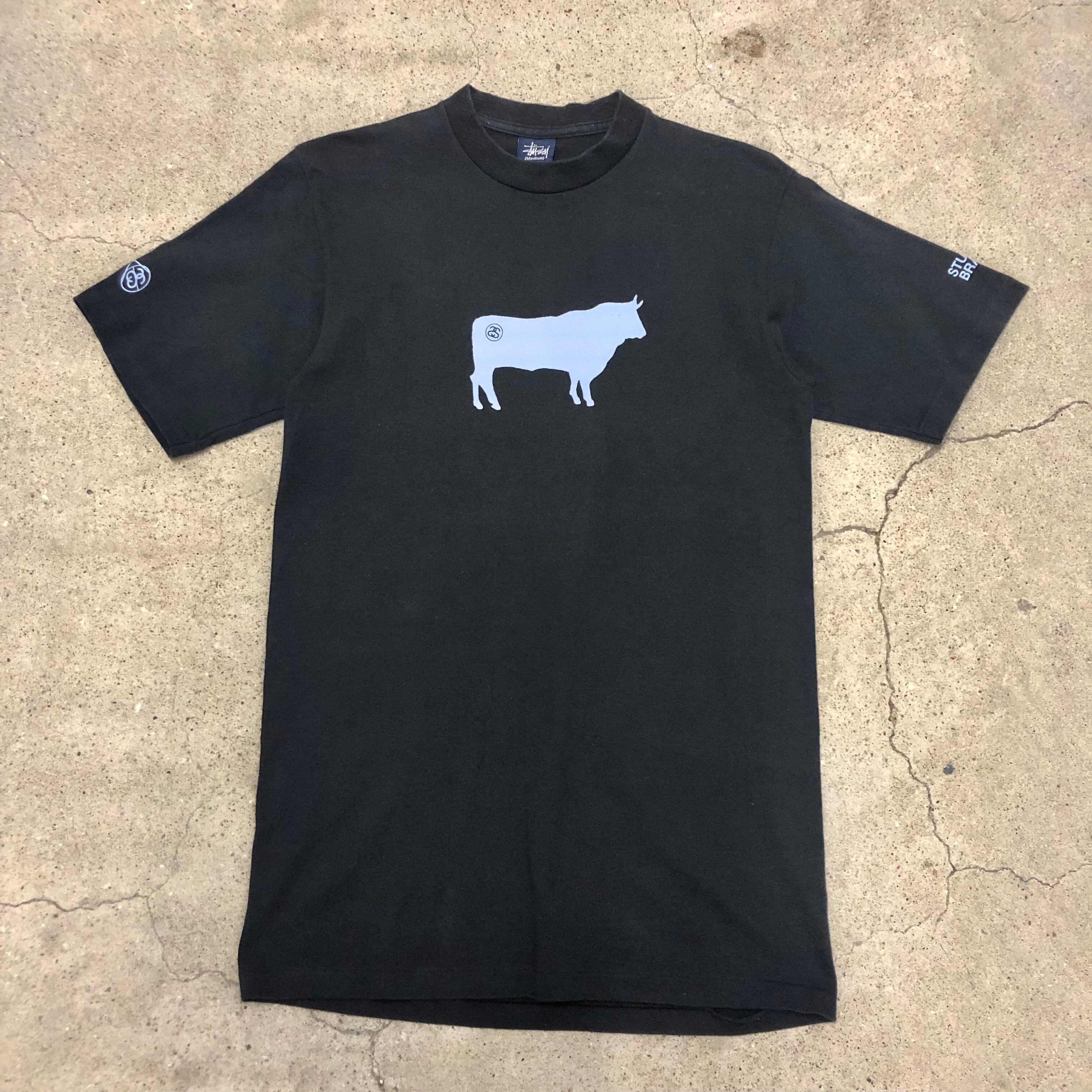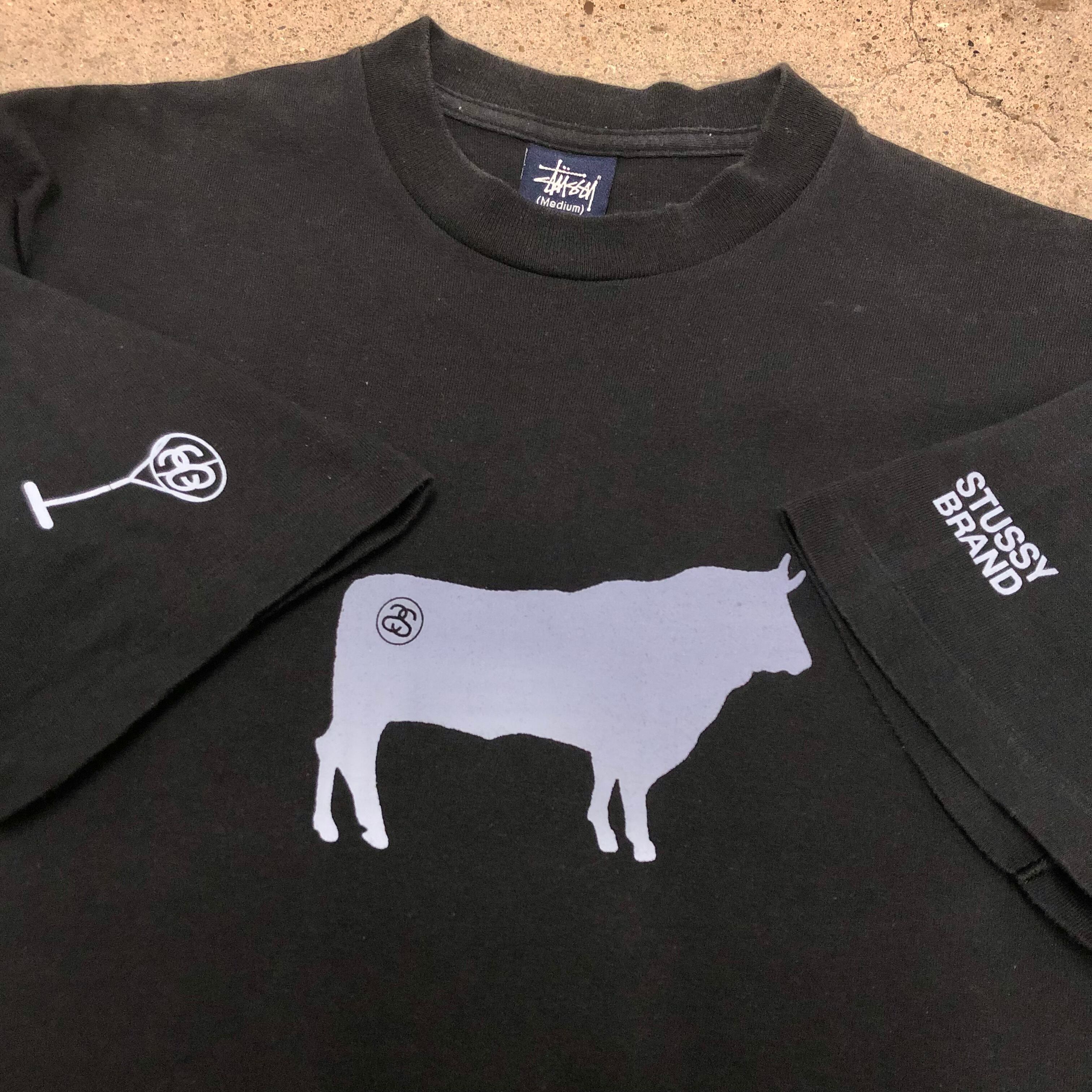00s OLD STUSSY/Cow print Tee/Mexico製/紺タグ/M/牛プリントTシャツ/ブラック/ステューシー/オールドステューシー/古着/ヴィンテージ/アーカイブ
