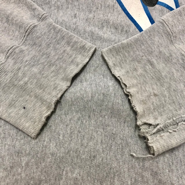 中古、古着特有の着用感があり、袖にシミやダメージあります。