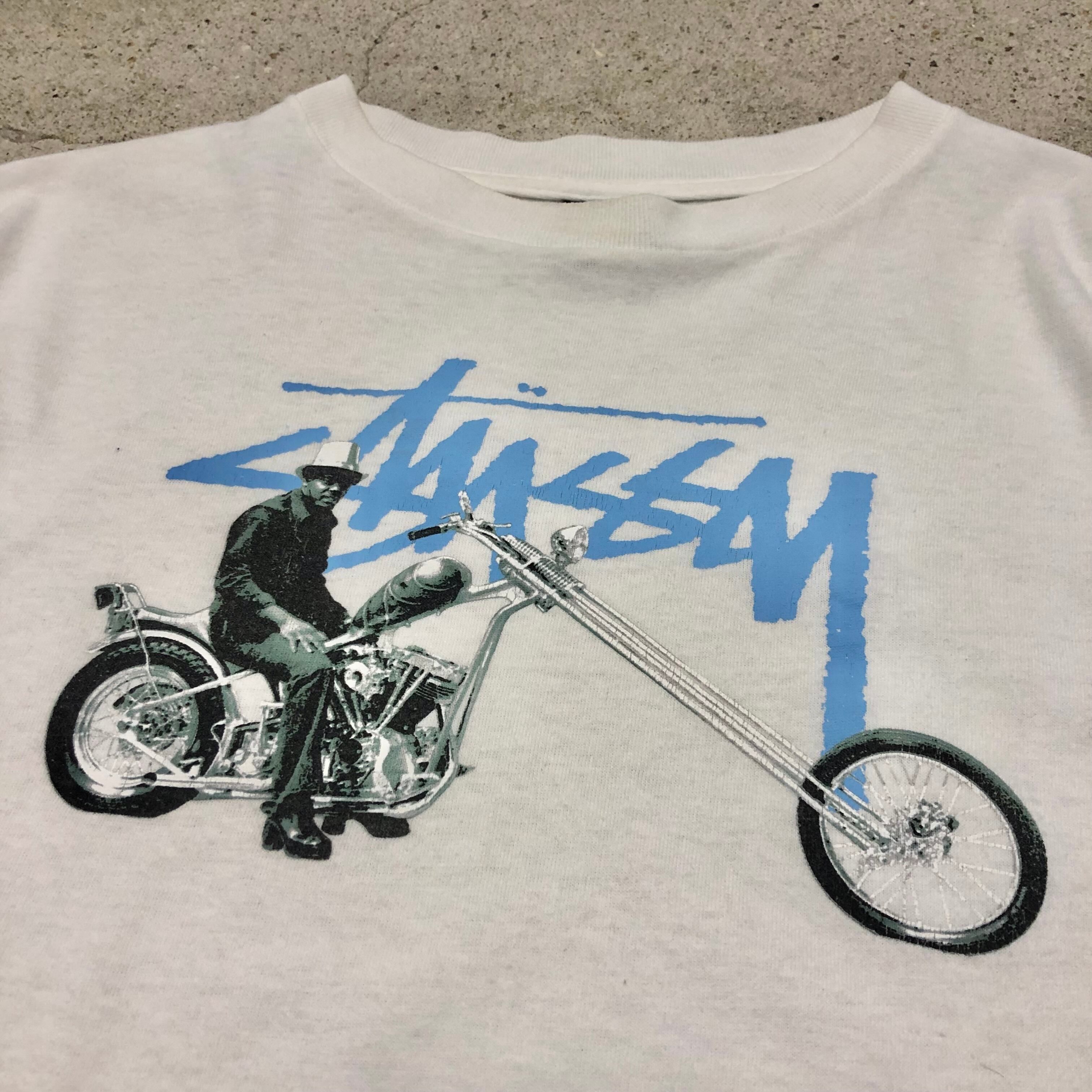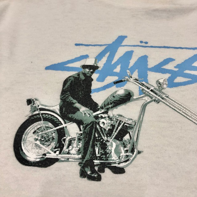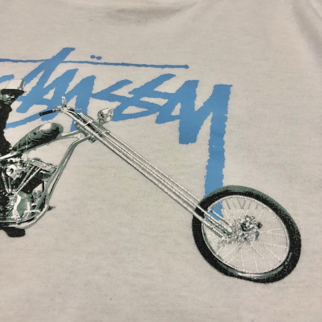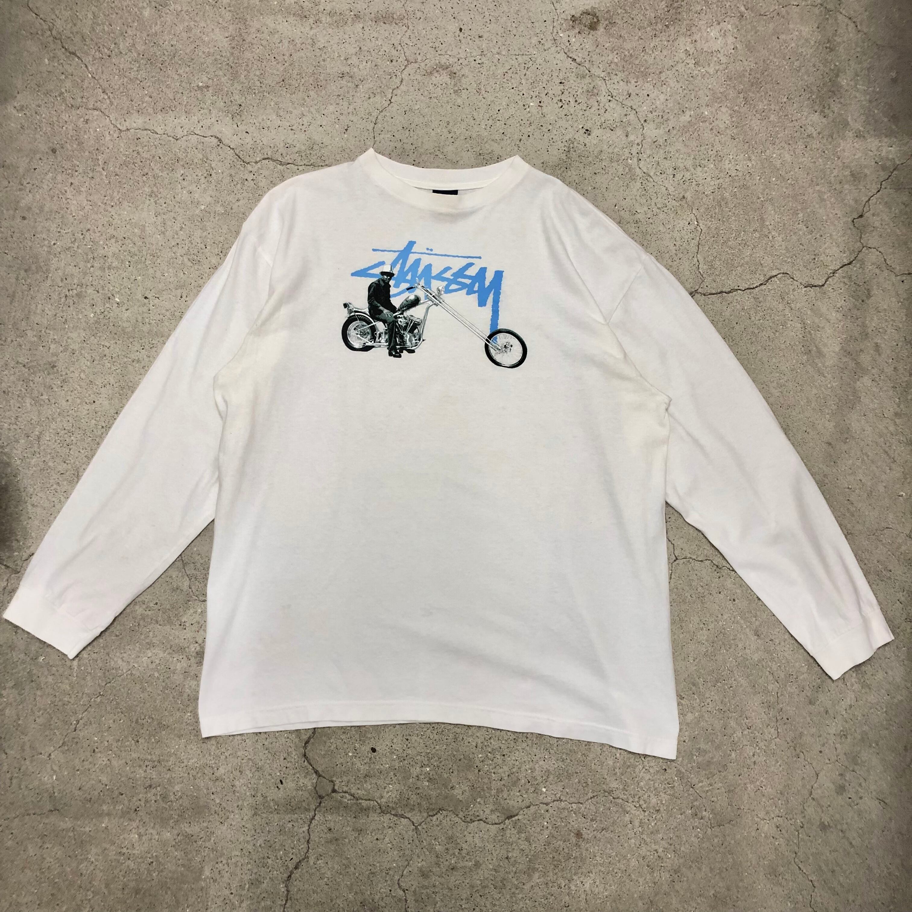 00s OLD STUSSY/Biker print L/S Tee/紺タグ/L/バイカープリント/ハーレー/チョッパー/ロンT/ホワイト/ステューシー/オールドステューシー/古着/ヴィンテージ/アーカイブ