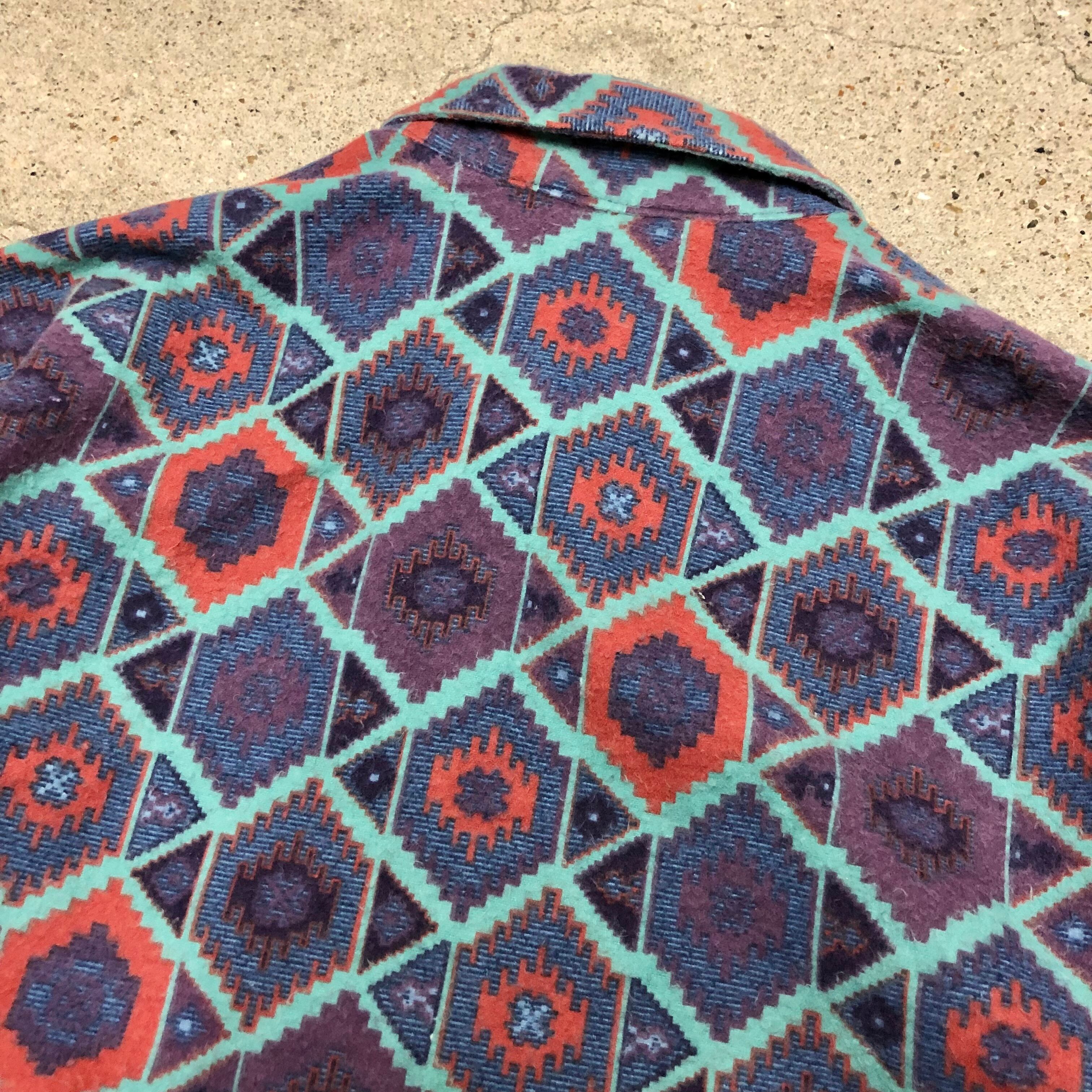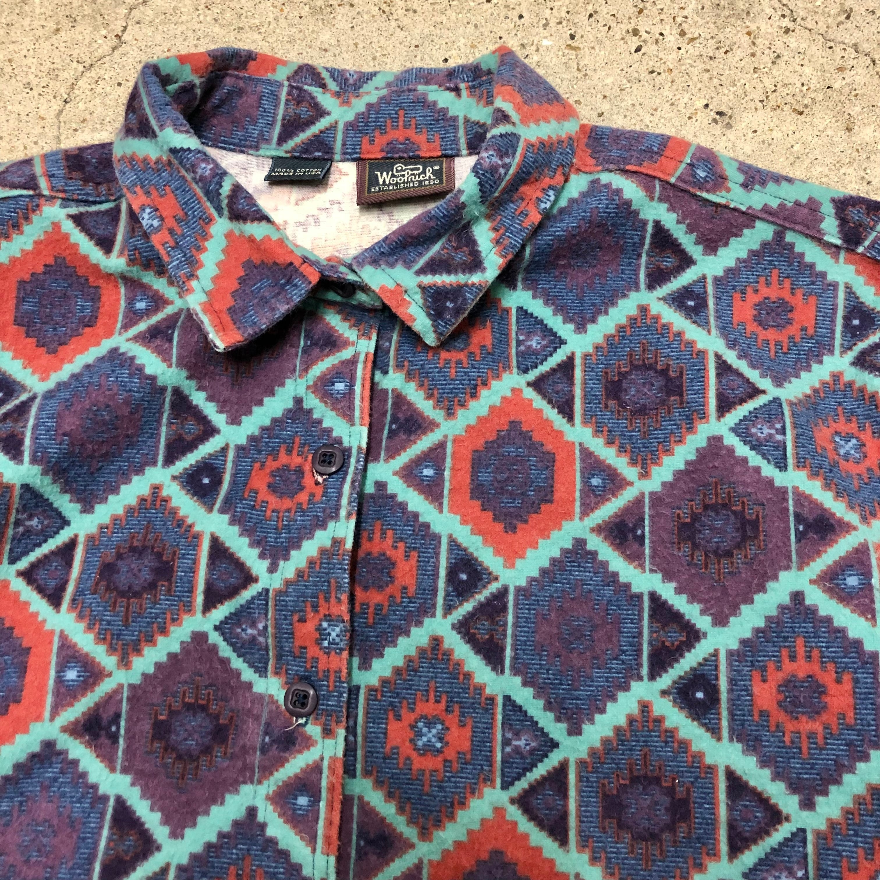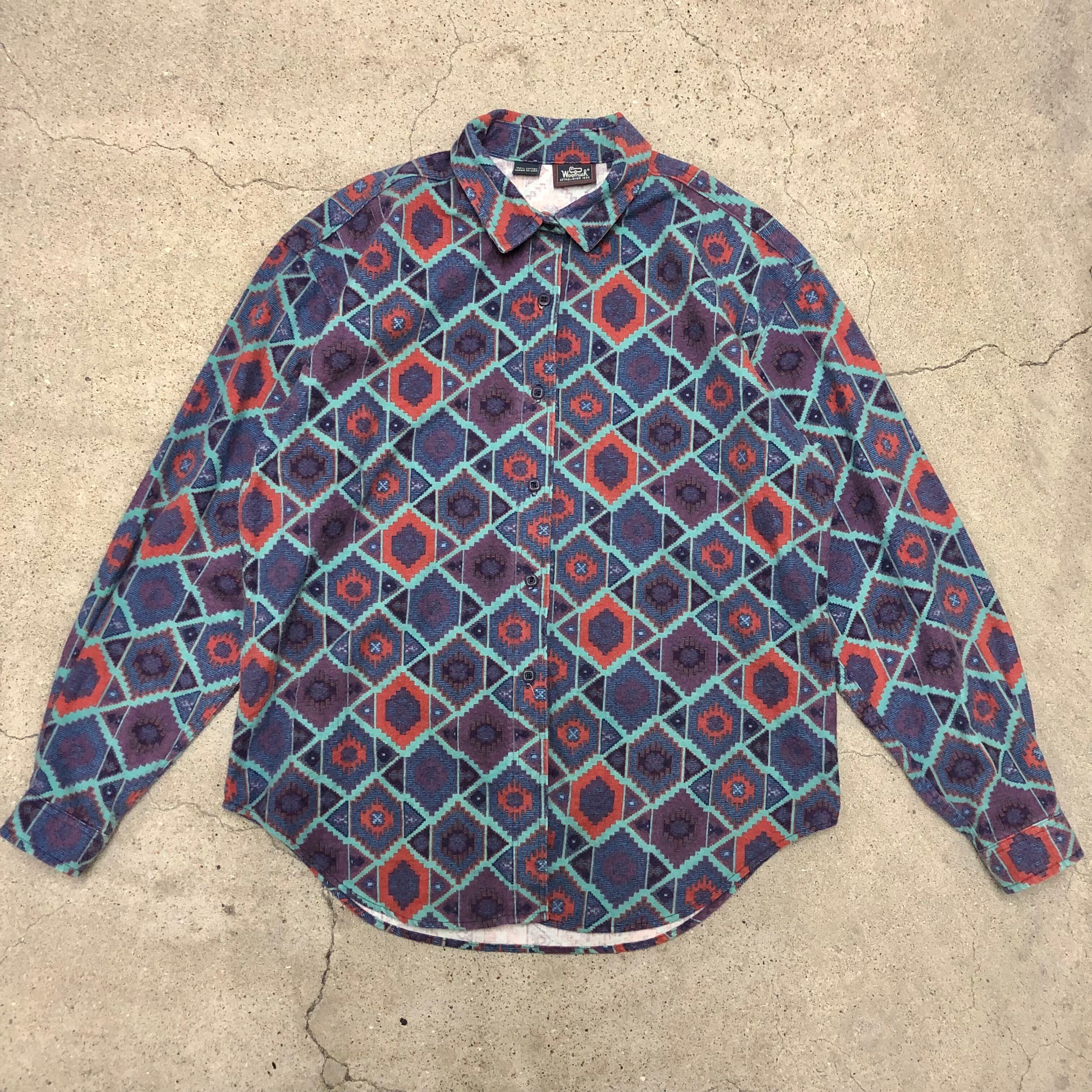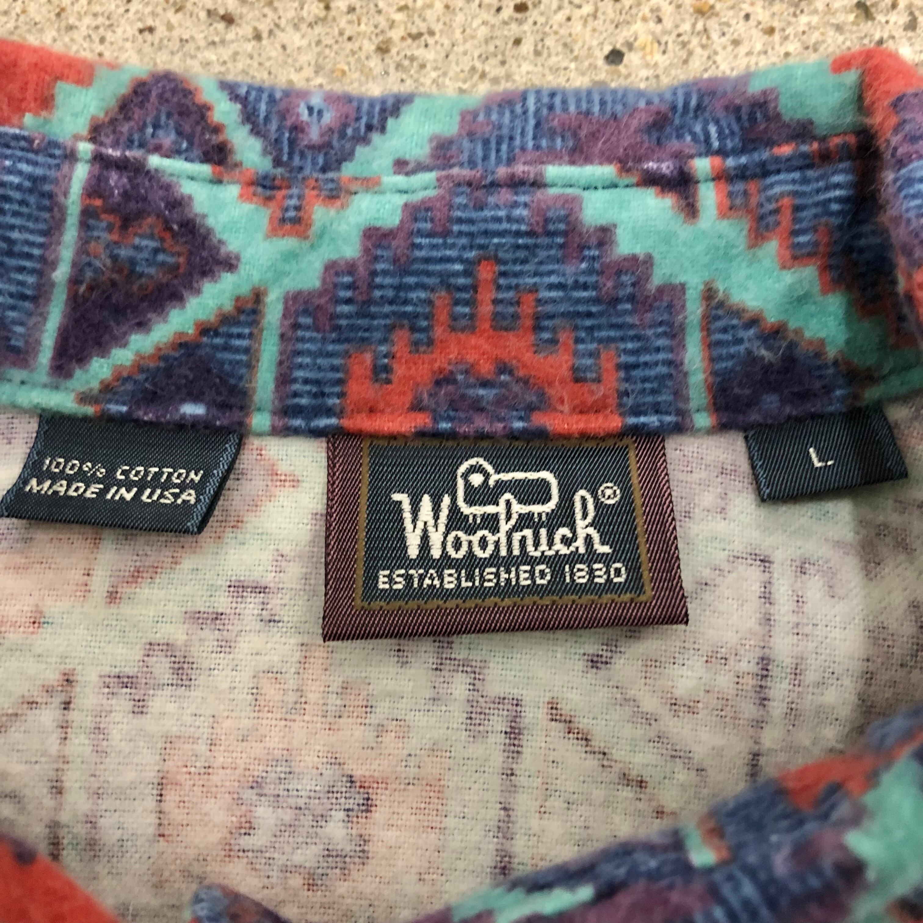 90s WOOLRICH/Flannel L/S Shirt/USA製/L(WOMENS)/総柄/ネルシャツ/長袖シャツ/ネイビー/パープル/ウールリッチ/アメカジ/アウトドア/古着/ヴィンテージ