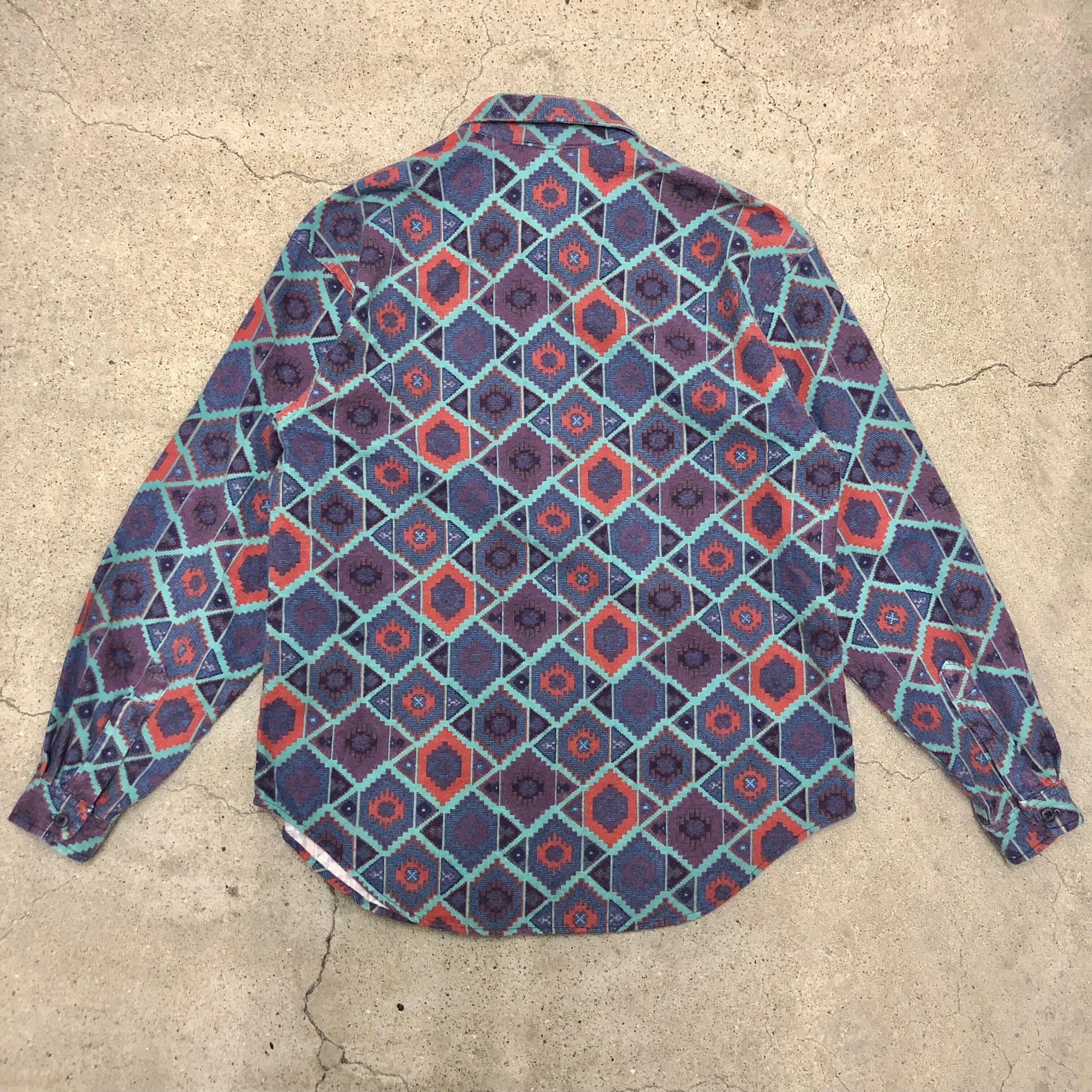 90s WOOLRICH/Flannel L/S Shirt/USA製/L(WOMENS)/総柄/ネルシャツ/長袖シャツ/ネイビー/パープル/ウールリッチ