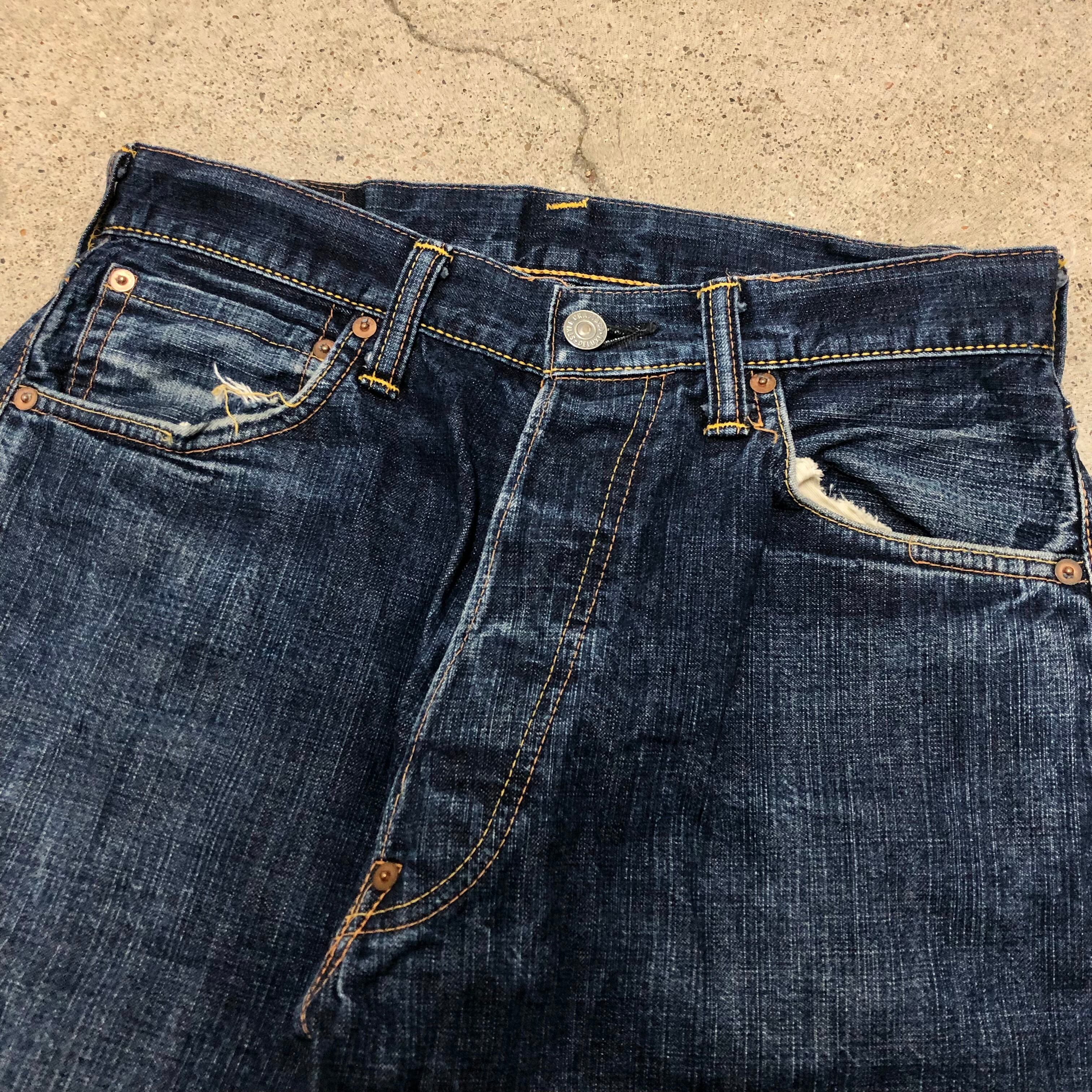 EVISU/2001/No.2/Denim pants/W30/L35/デニムパンツ/セルビッチ/カモメ刺繍/インディゴ/エヴィス/アメカジ/日本製/古着/耳付き/ボタンフライ/レザーパッチ