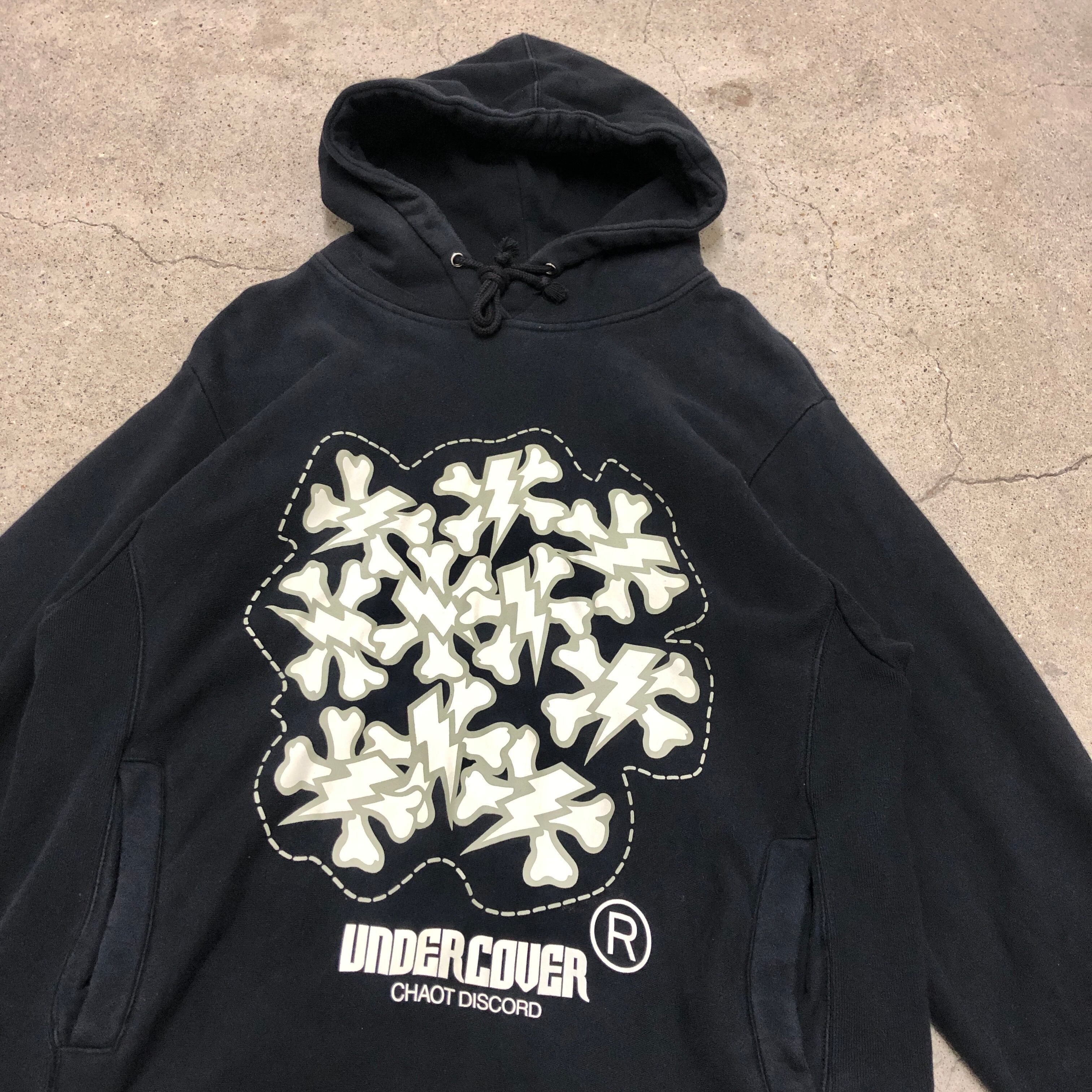 UNDERCOVER/01ss CHAOTIC DISCORD Hoodie/L/Thunder bone/サンダーボーンプリントフーディ/パーカー/ブラック/アンダーカバー/アンカバ/Z221-1/日本製/古着/裏原/アーカイブ