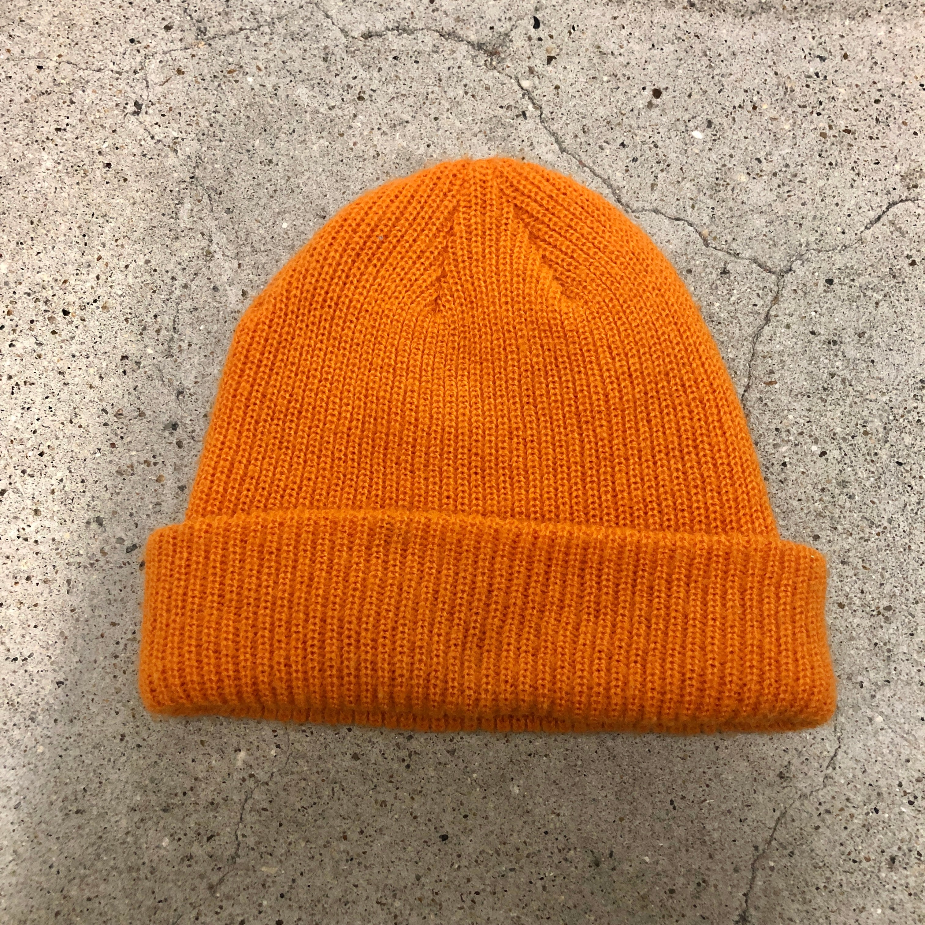 STUSSY/Stock Logo Beanie/Free/ストックロゴ/刺繍ロゴ/ビーニー/ニット帽/ニットキャップ/オレンジ/ステューシー/帽子/古着/中古