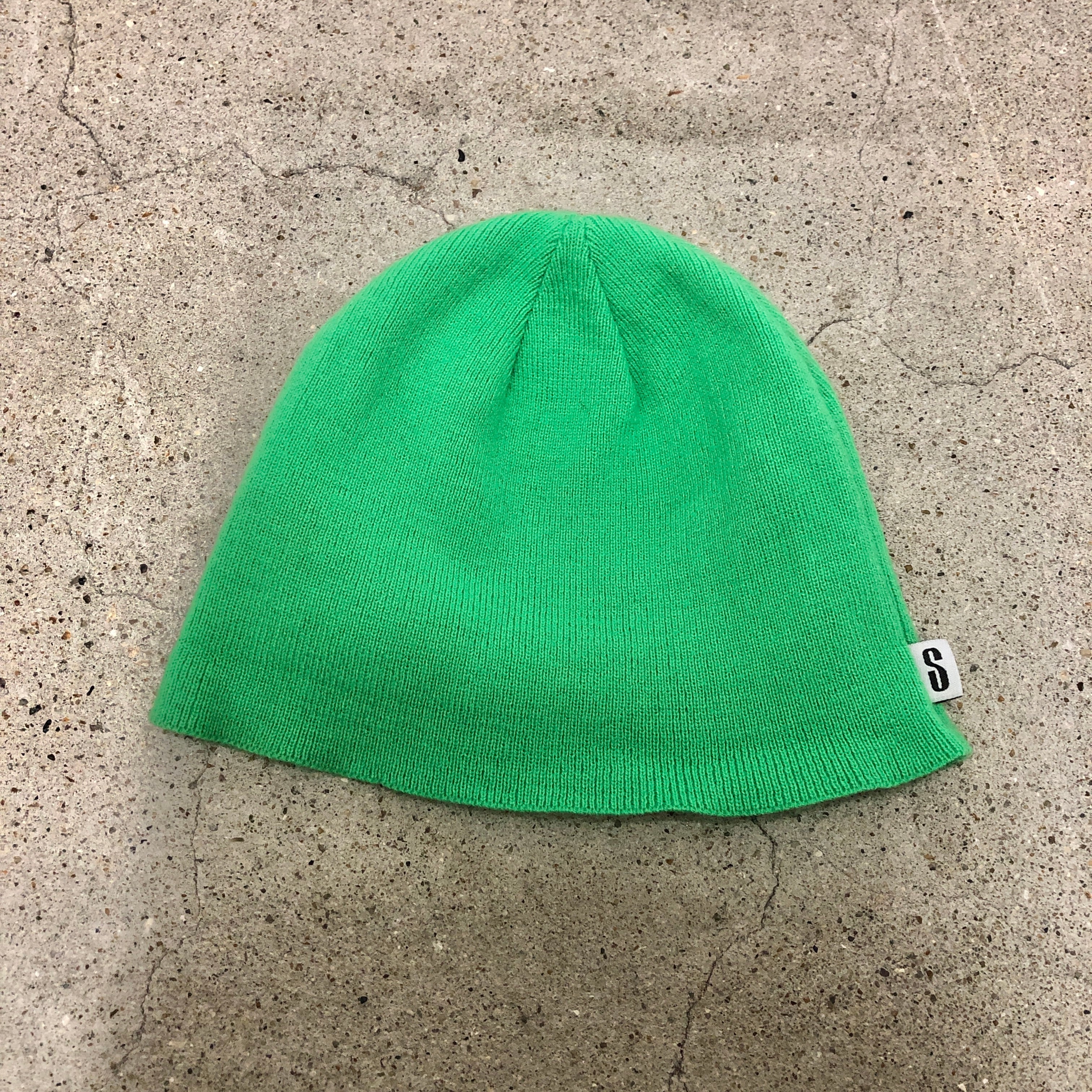 00s STUSSY/Plain Beanie/Free/ビーニー/ニットキャップ/グリーン/ニット帽/無地/ロゴタグ/ステューシー