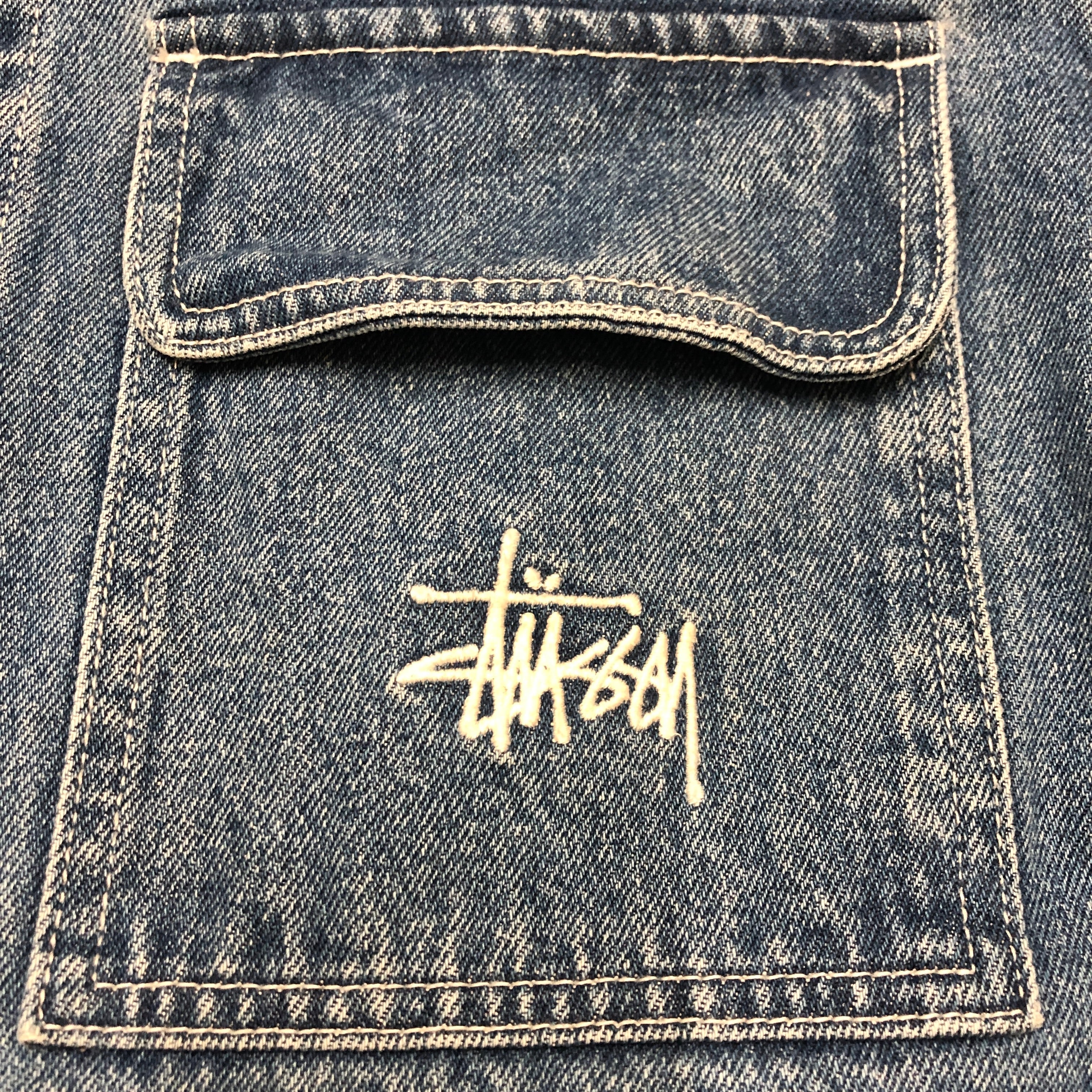 STUSSY/Denim Coveralls/M/デニムカバーオール/デニムジャケット/インディゴ/ストックロゴ/刺繍ロゴ/ステューシー/ストリート/スケボー/現行モデル/古着/中古