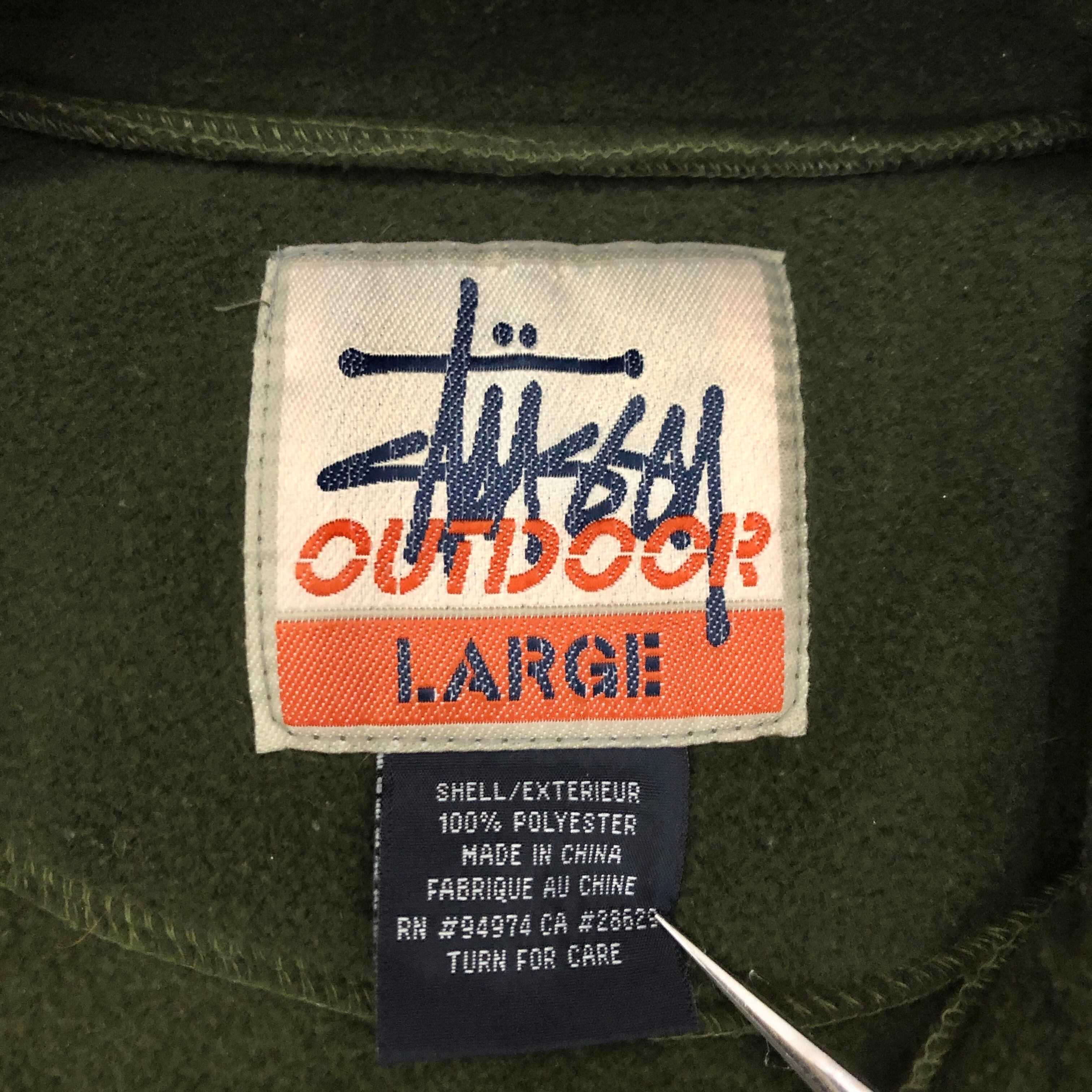 90s OLD STUSSY/STUSSY OUTDOOR/Fleece Jacket/L/フリースジャケット/カーキ/リフレクター/ストックロゴ/刺繍ロゴ/ステューシー/オールドステューシー