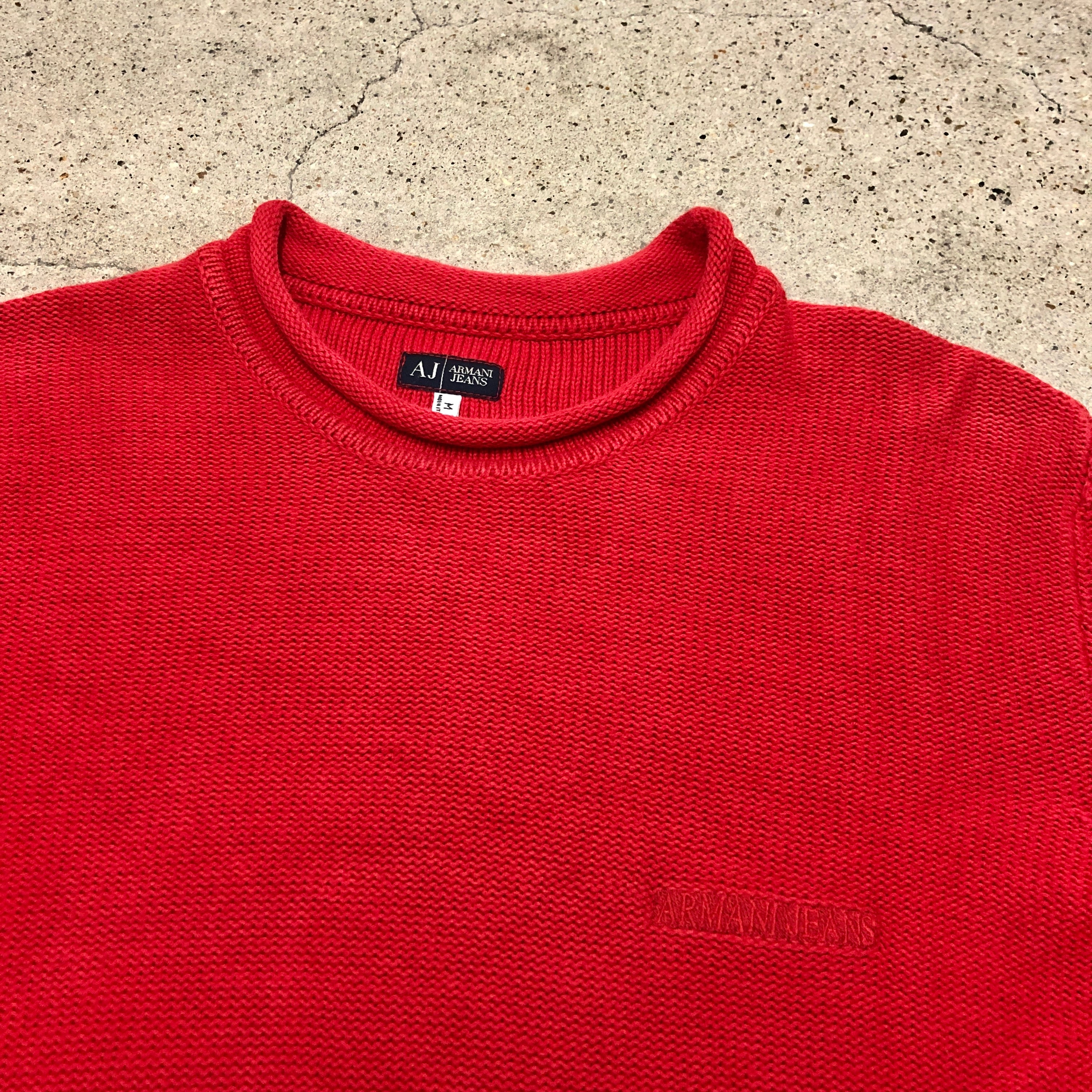 00s ARMANI JEANS/Cotton Knit/Italy製/M/コットンニットセーター/レッド/AJ/アルマーニジーンズ/インポート/古着/アーカイブ