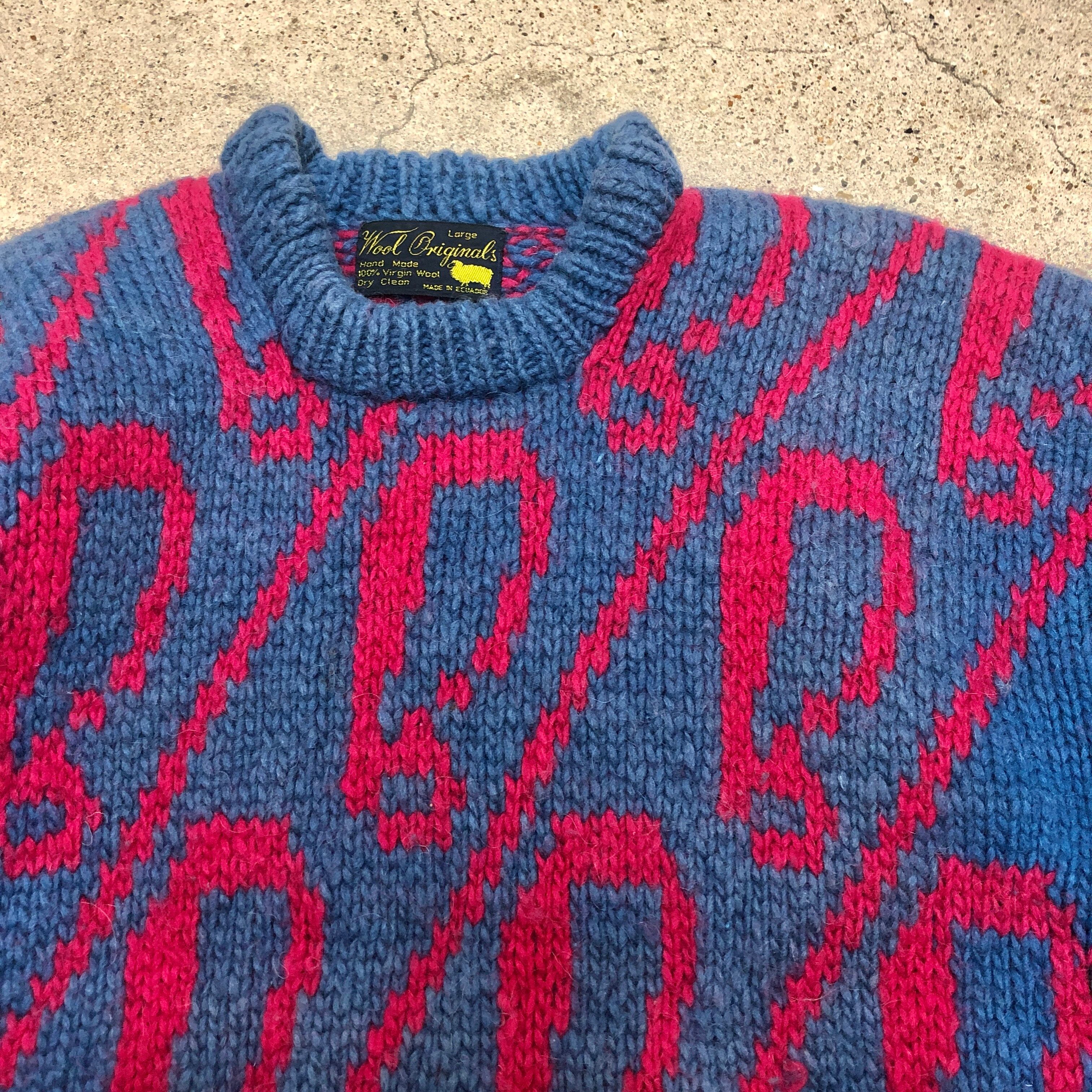 Ecuador Knit/Wool originals/L/!マークデザイン/エクアドルニット/セーター/Hand made/ネイビー/ピンク