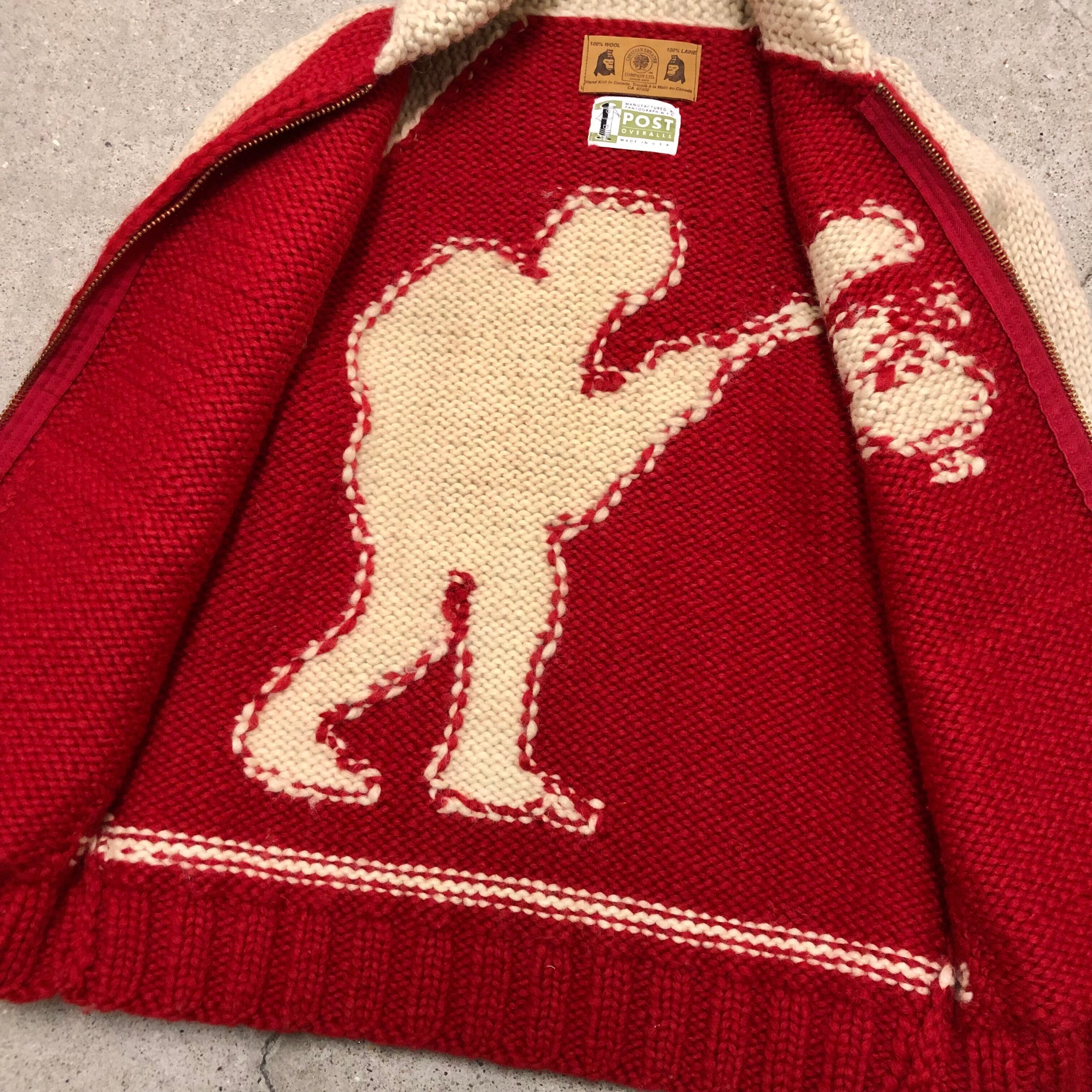 90~00s A BATHING APE/×POST OVERALLS×CANADIANSWEATER/Cowichan cardigan/Free/カウチンカーディガン/レッド/クリーム/アベイシングエイプ/ポストオーバーオールズ/カナディアンセーター/古着/裏原/裏原宿/アーカイブ