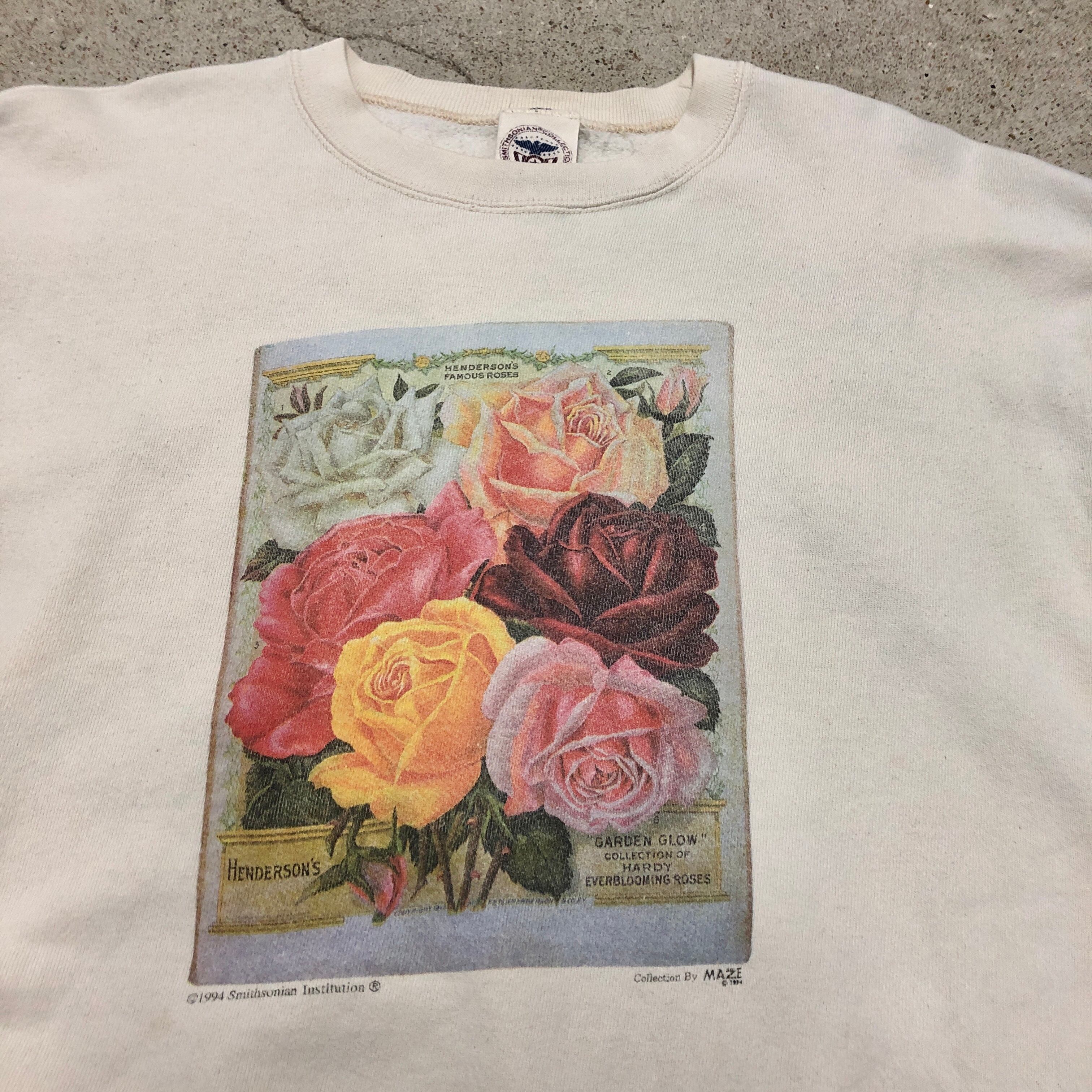 90s Smithsonianinstitution/Flower print Sweat/USA製/1994年製/L/MAZE/フラワープリントスウェット/アート/ホワイト/スミスソニアン博物館/アーティスト/古着/ヴィンテージ