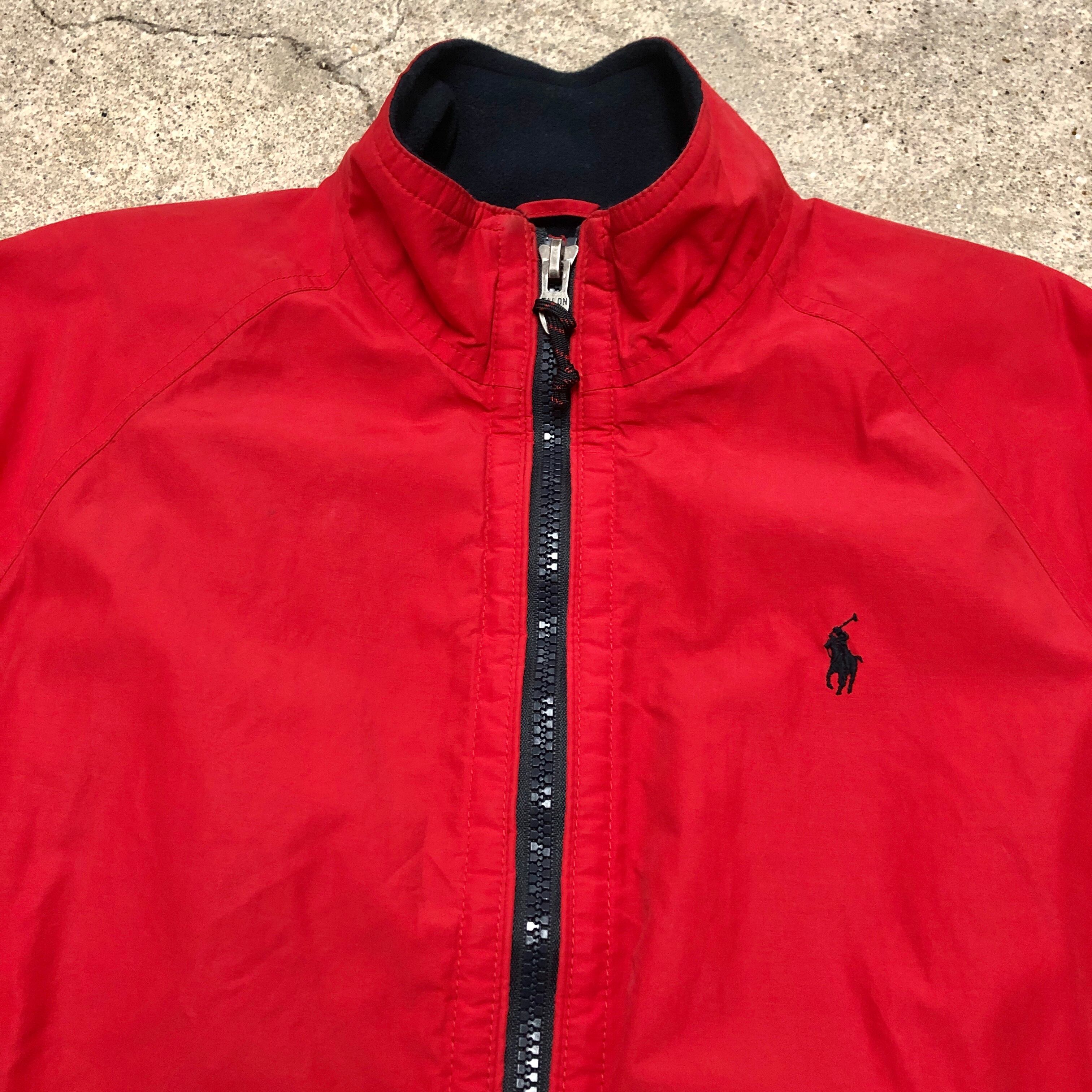 90s POLO RALPH LAUREN/Swing top Jacket/M/スイングトップジャケット/ナイロンジャケット/フリース/TALONzip/ポニー刺繍/レッド/ネイビー/ポロラルフローレン
