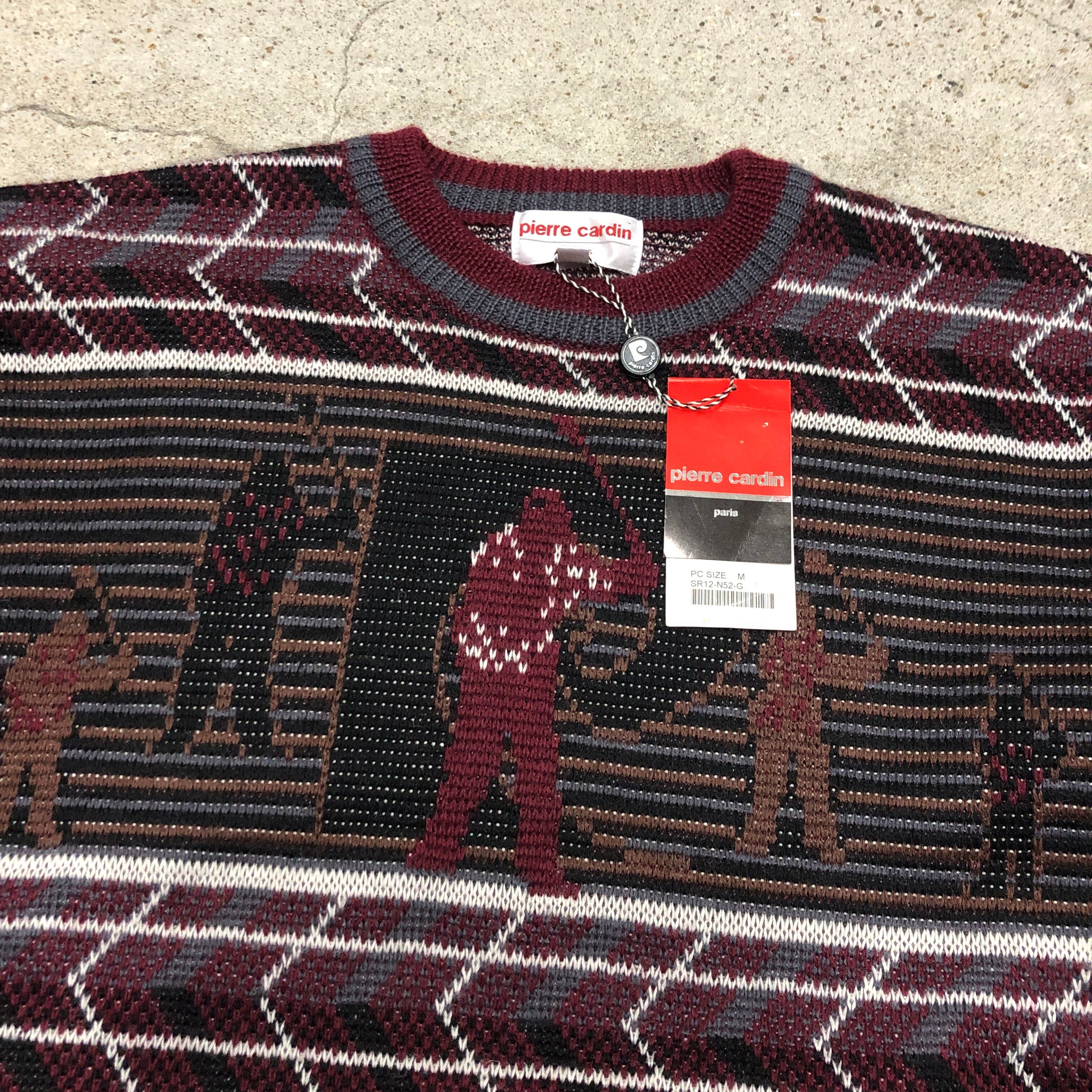 90~00s pierre cardin/Knit Sweater/DEADSTOCK/M/タグ付き/ニットセーター/ゴルファーデザイン/バーガンディー/ボルドー/ピエールカルダン