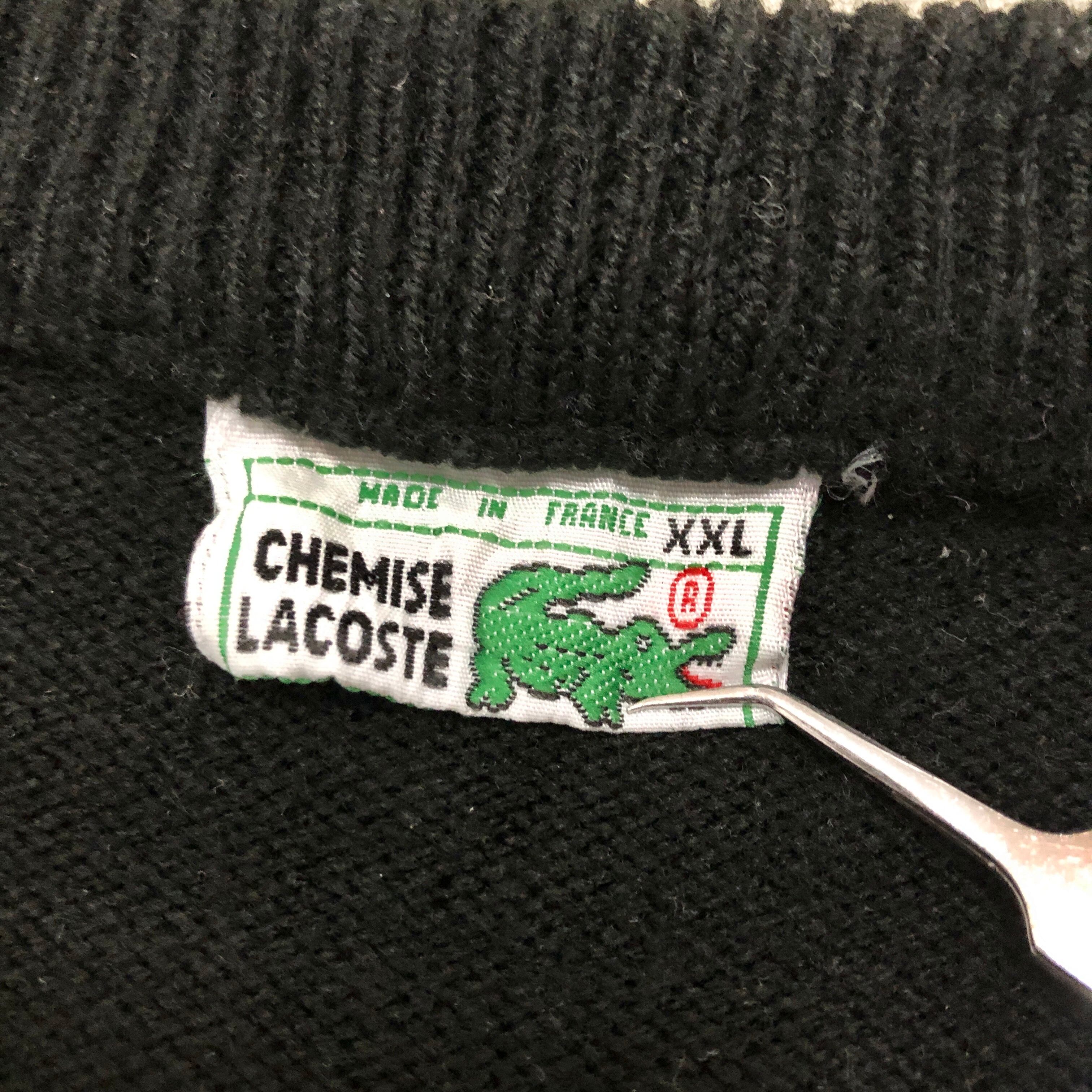 70〜80s LACOSTE/V neck Knit Sweater/France製/XXL/Vネックニット/セーター/ブラック/ロゴ刺繍/ラコステ