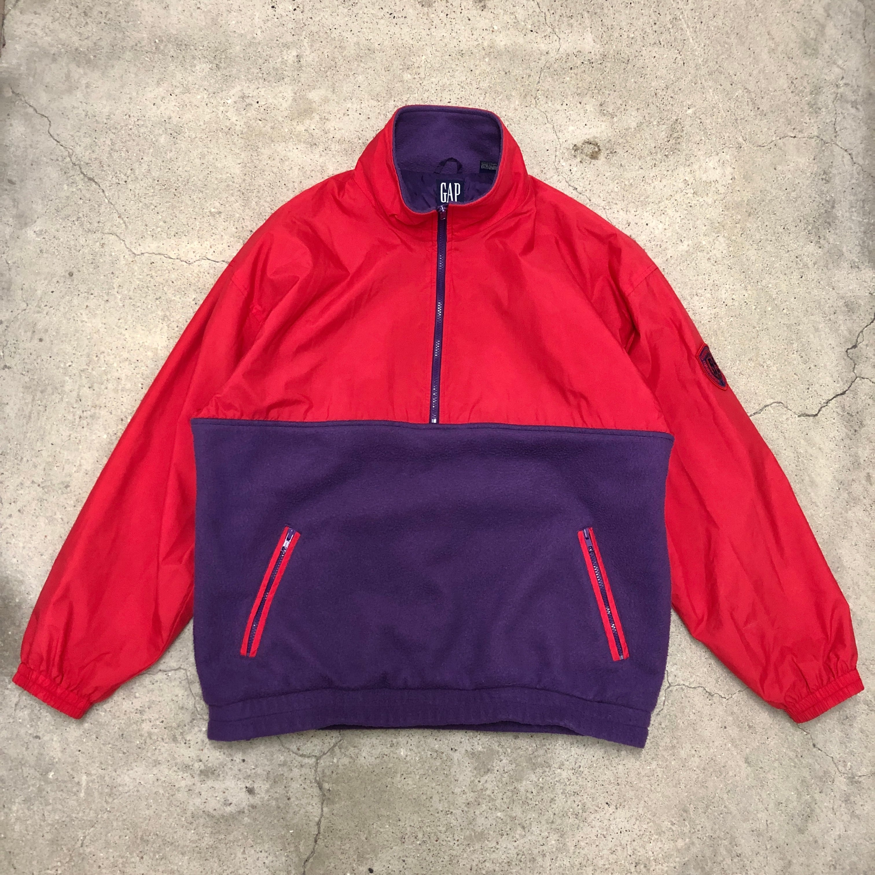 90s OLD GAP/Half zip Jacket/XL/ハーフジップジャケット/フリース×ナイロンジャケット/バイカラー/レッド/パープル/ギャップ/古着/レギュラー古着