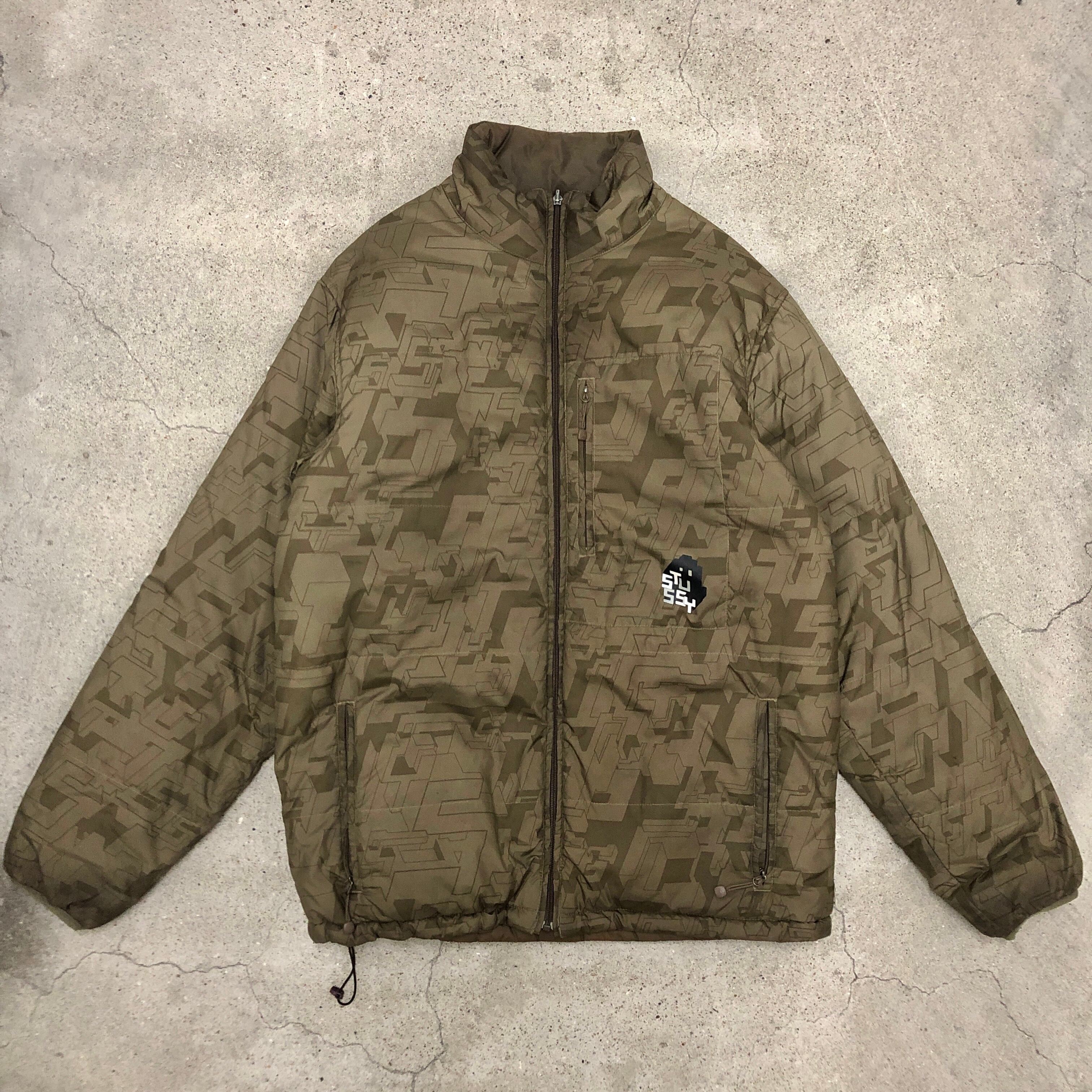 00s OLD STUSSY×Boris Tellegen DELTA/Reversible Puff Jacket/XL/リバーシブル/パフジャケット/ルービック/ブラウン/総柄/ステューシー/オールドステューシー/古着/ヴィンテージ/アーカイブ