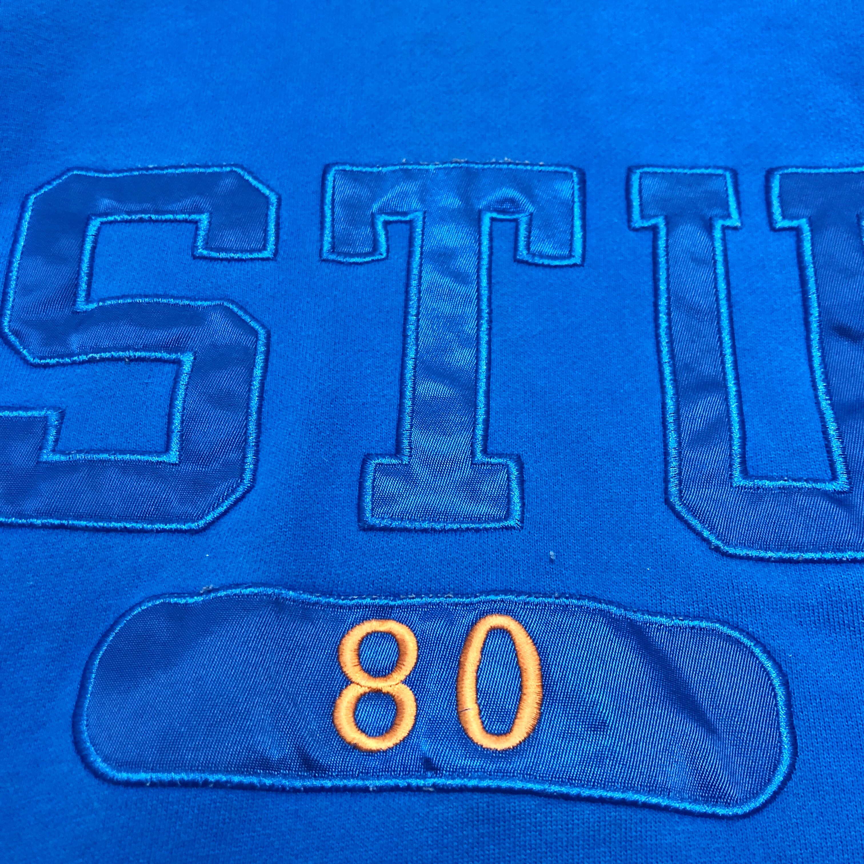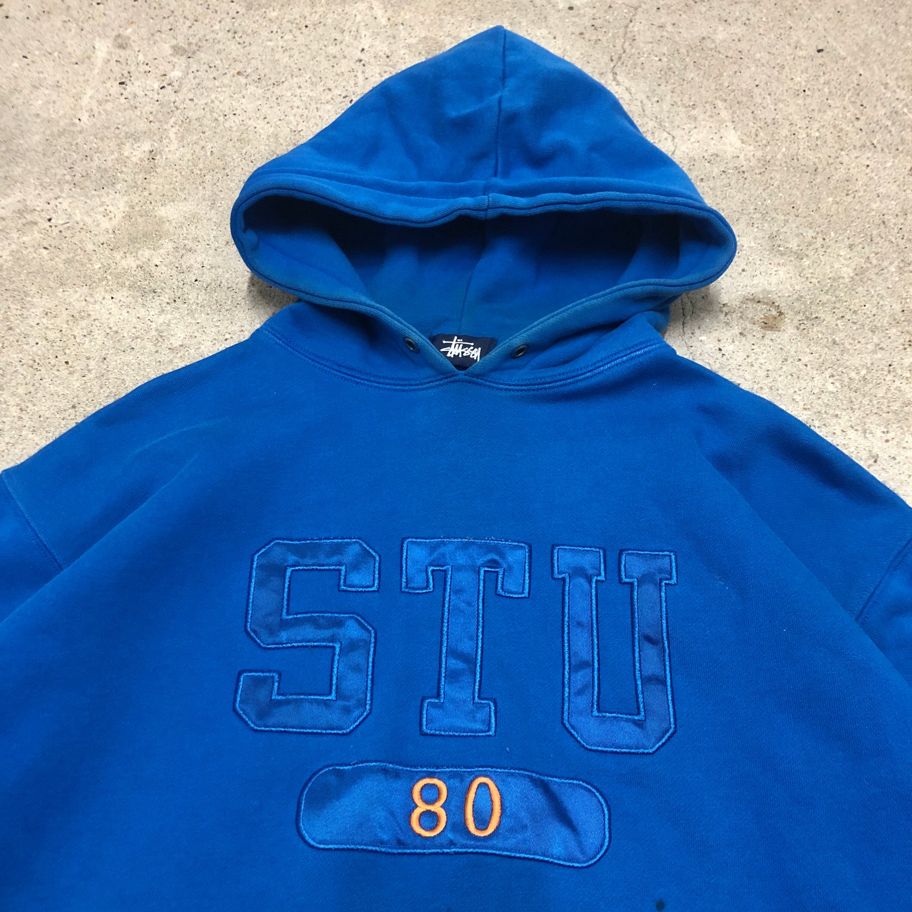 90~00s OLD STUSSY/Logo Hoodie/China製/紺タグ/L/STU 80/ロゴフーディ/パーカー/ブルー/オレンジ/ステューシー/オールドステューシー/古着/ヴィンテージ/アーカイブ