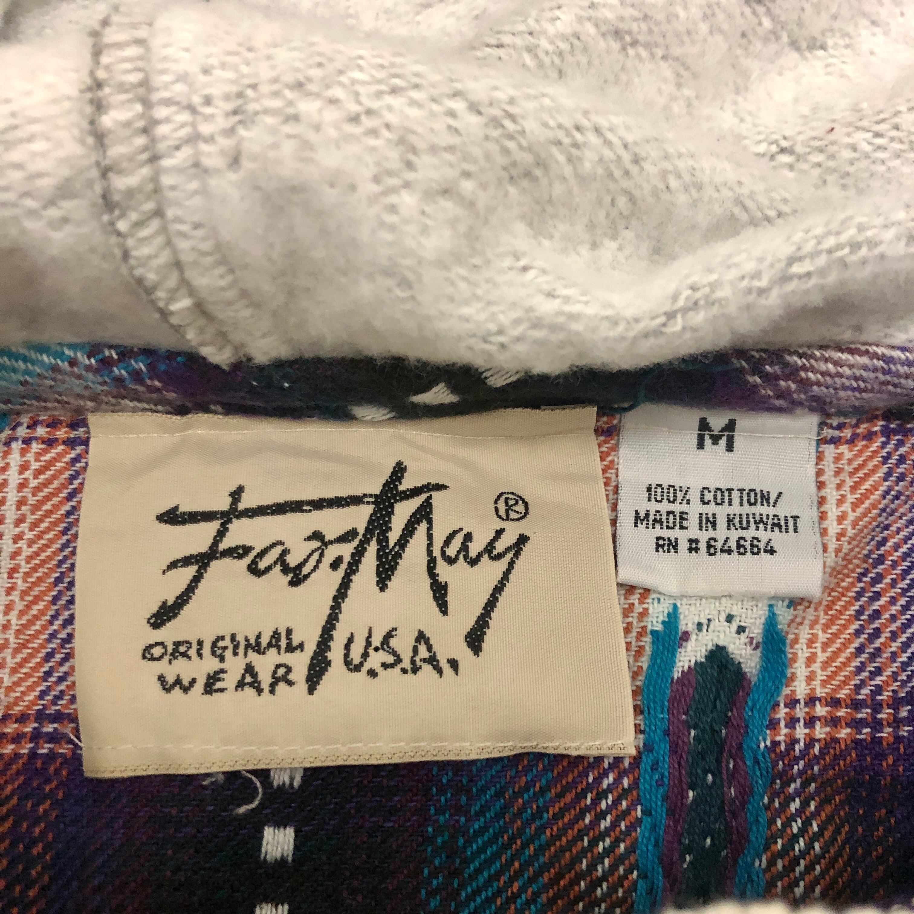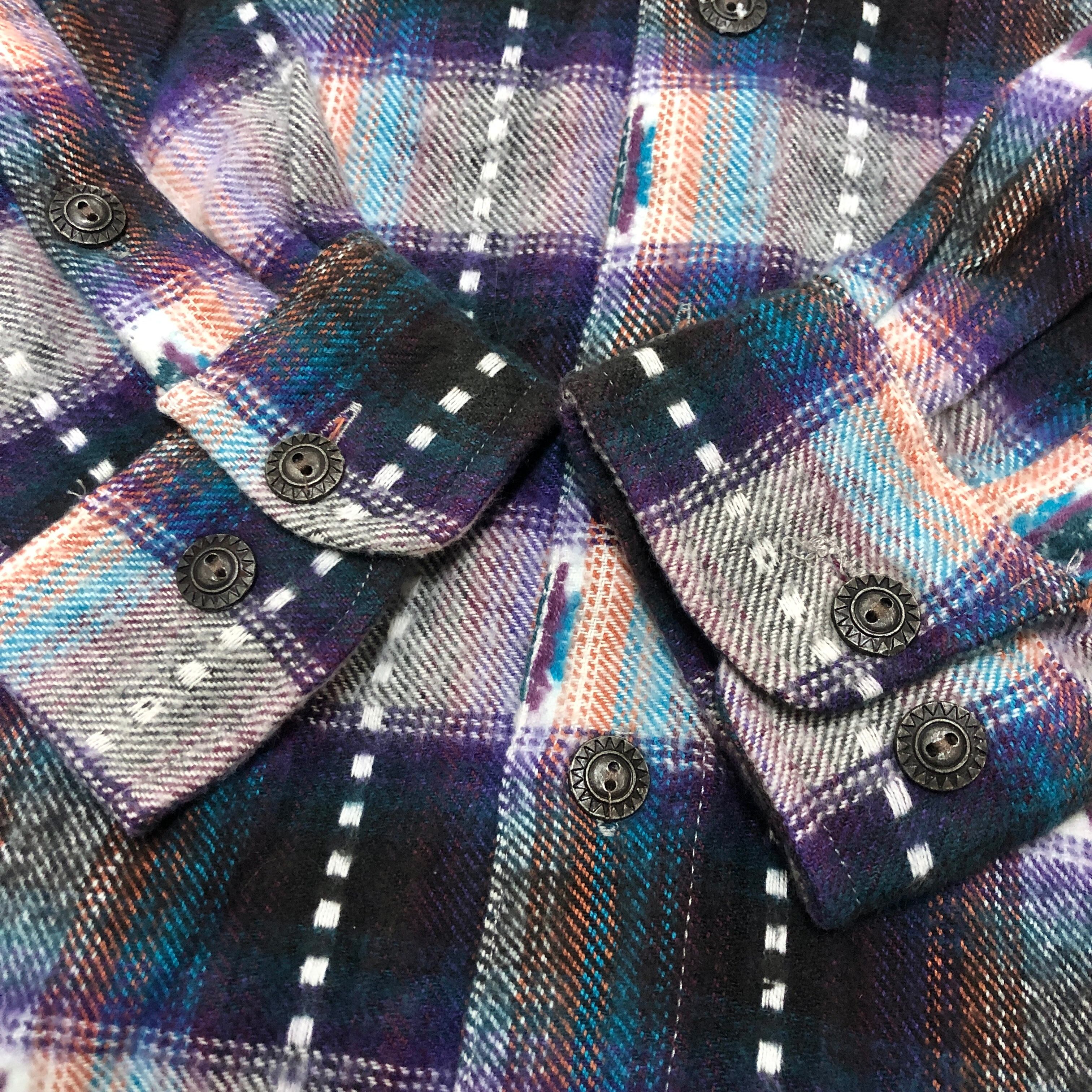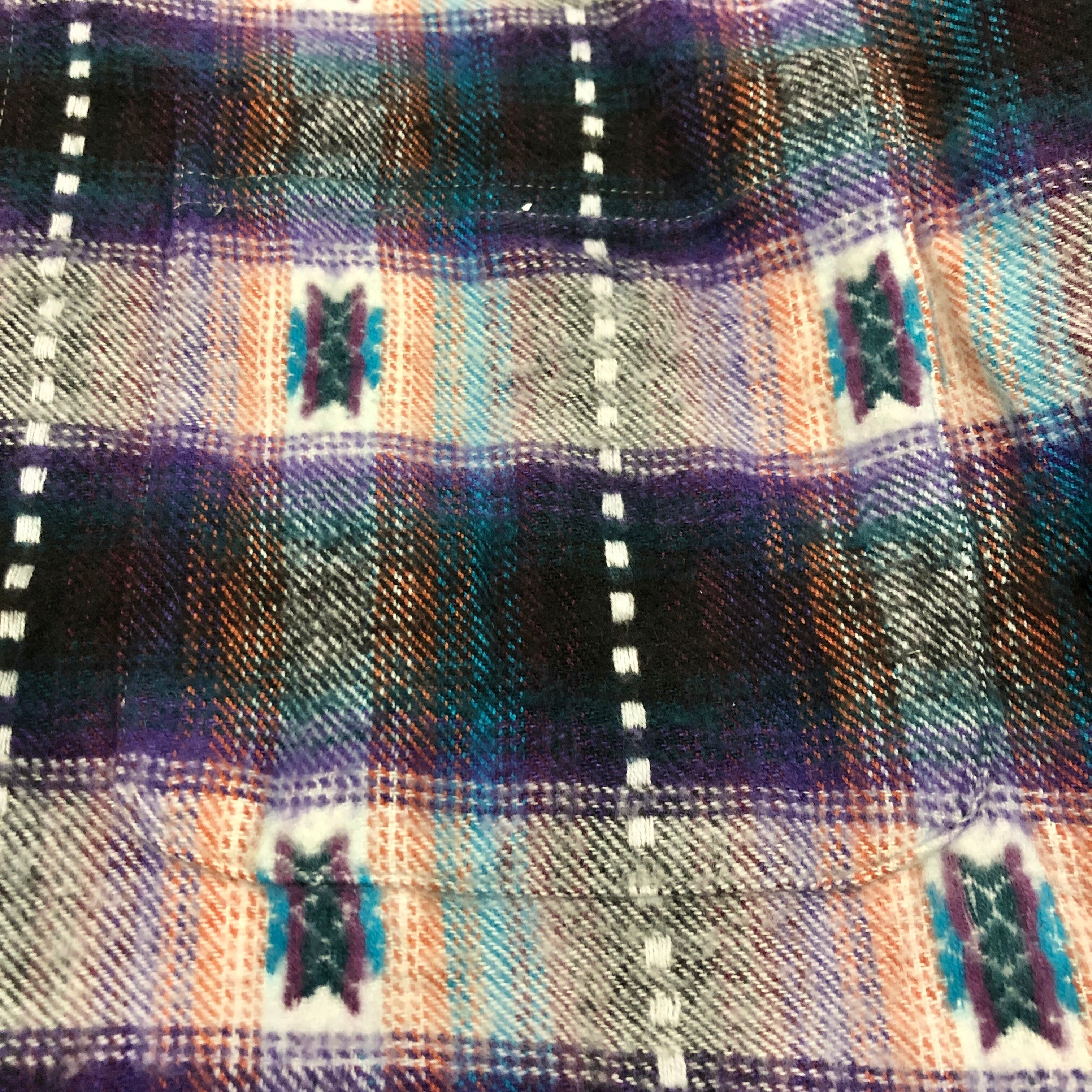 90~00s unknown/Hooded Flannel Shirt/M/フード付きネルシャツ/長袖シャツ/ネイビー/パープル/クウェート製
