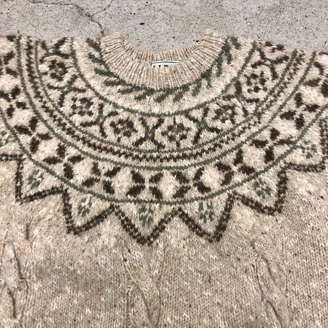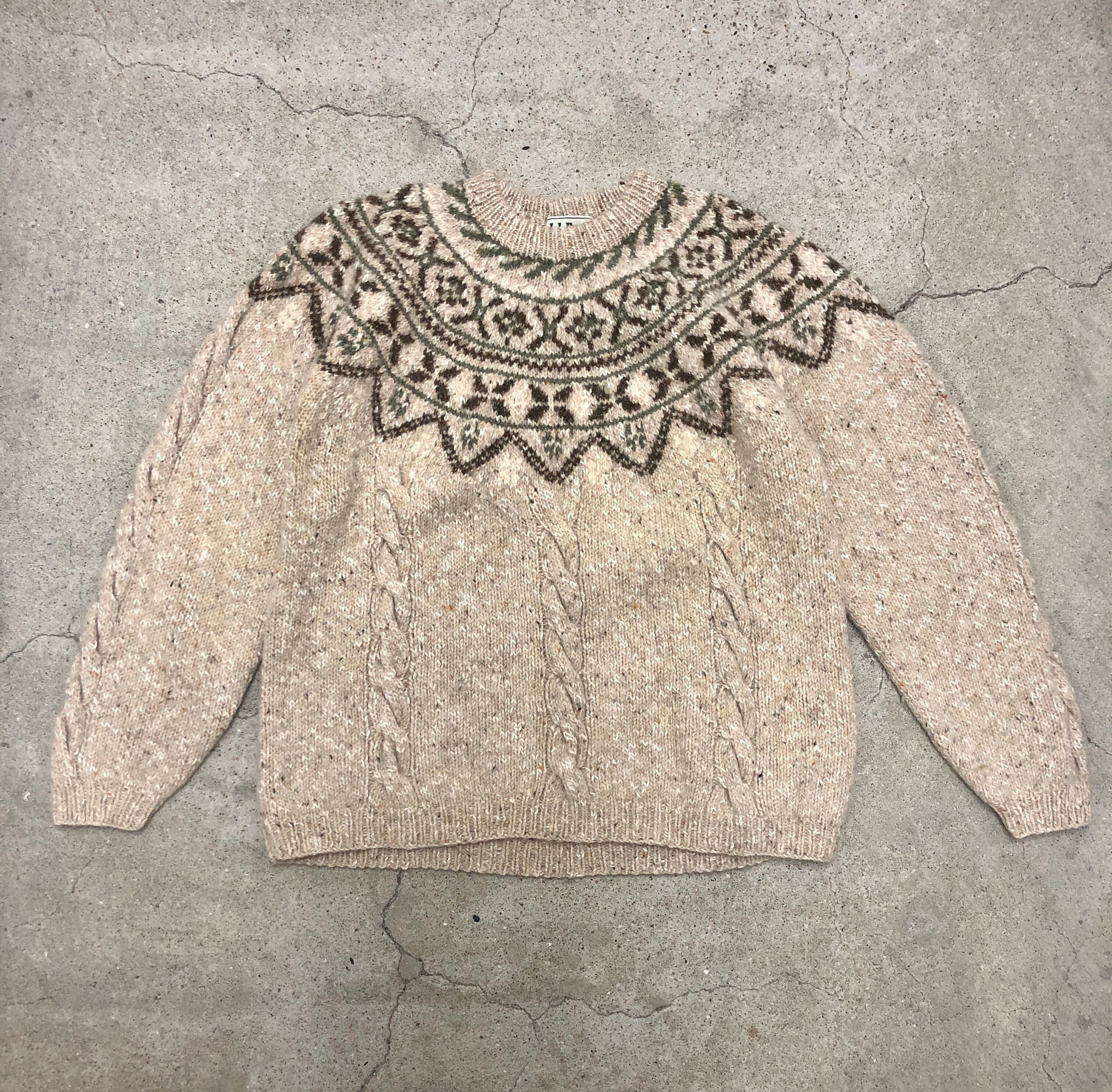 80~90s L.L.Bean/Nordic Knit Sweater/L(WOMENS)/ノルディック柄ニット/セーター/クリーム/OP982/エルエルビーン/OUTDOOR/アウトドア/古着/ヴィンテージ