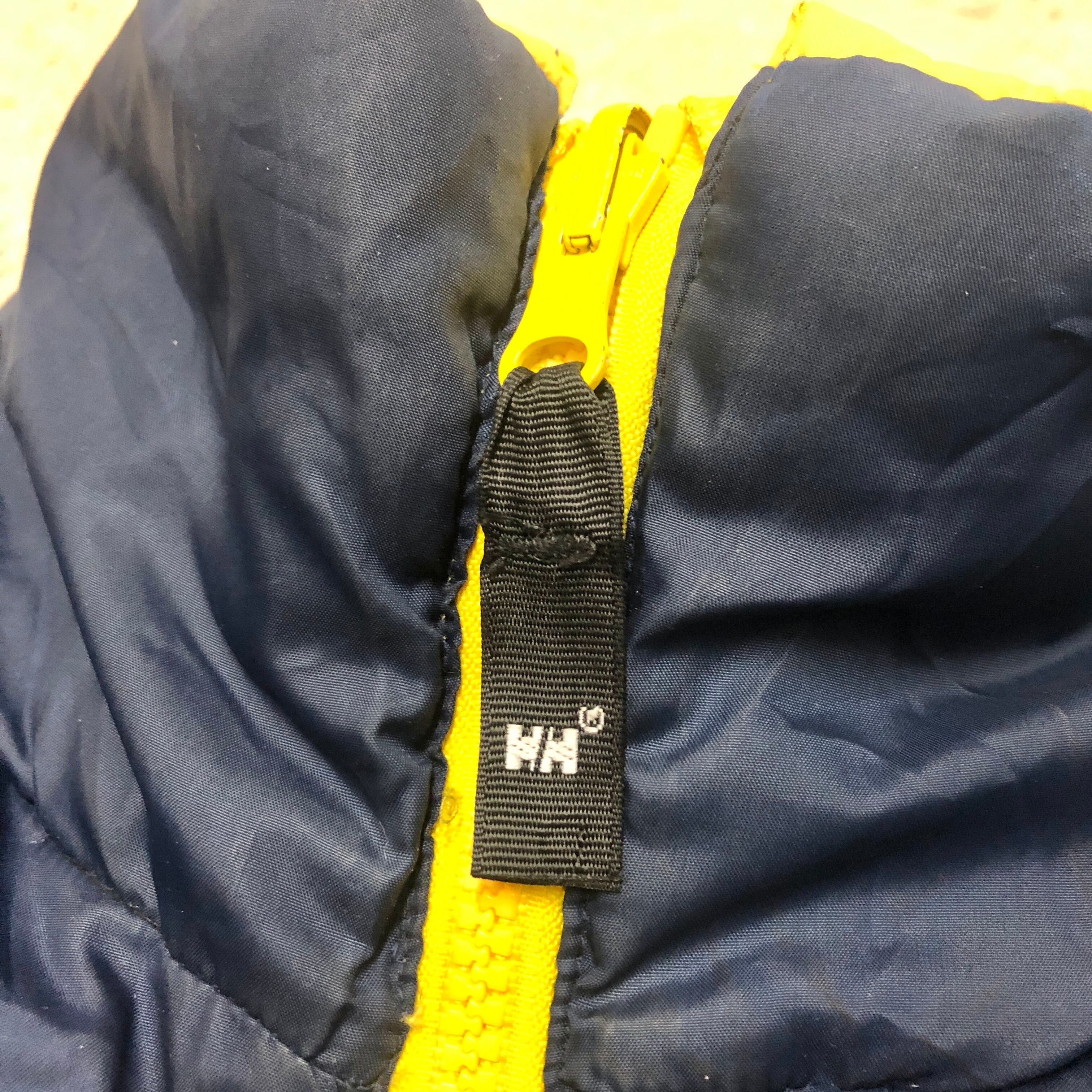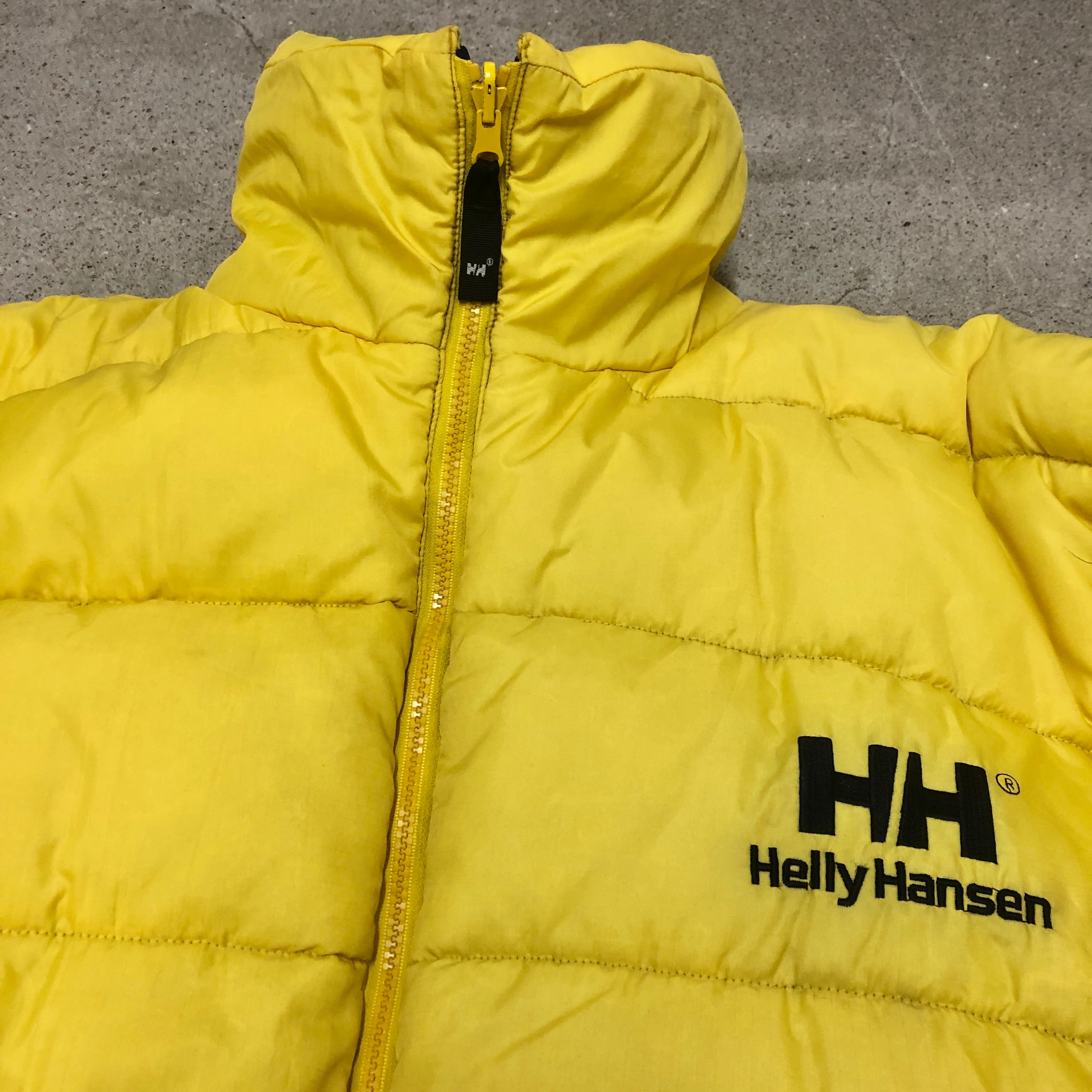 90s HELLY HANSEN/Reversible Down Jacket/XL/リバーシブルダウンジャケット/ロゴプリント/ネイビー/イエロー/ヘリーハンセン/OUTDOOR/アウトドア/古着