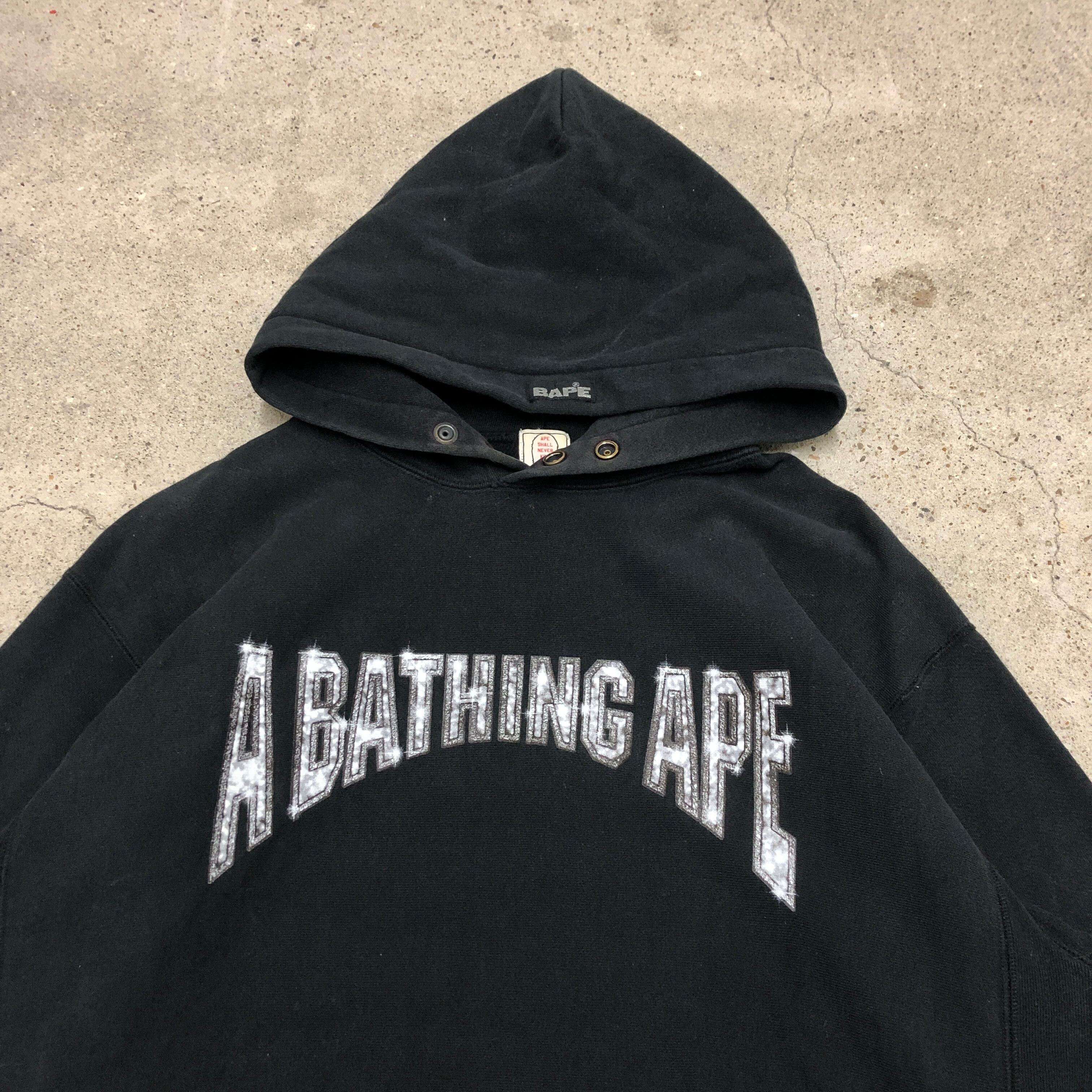 00s A BATHING APE/Logo print Hoodie/初期タグ/L/ロゴプリントフーディ/パーカー/BAPE/ブラック/アベイシングエイプ/裏原/古着/アーカイブ