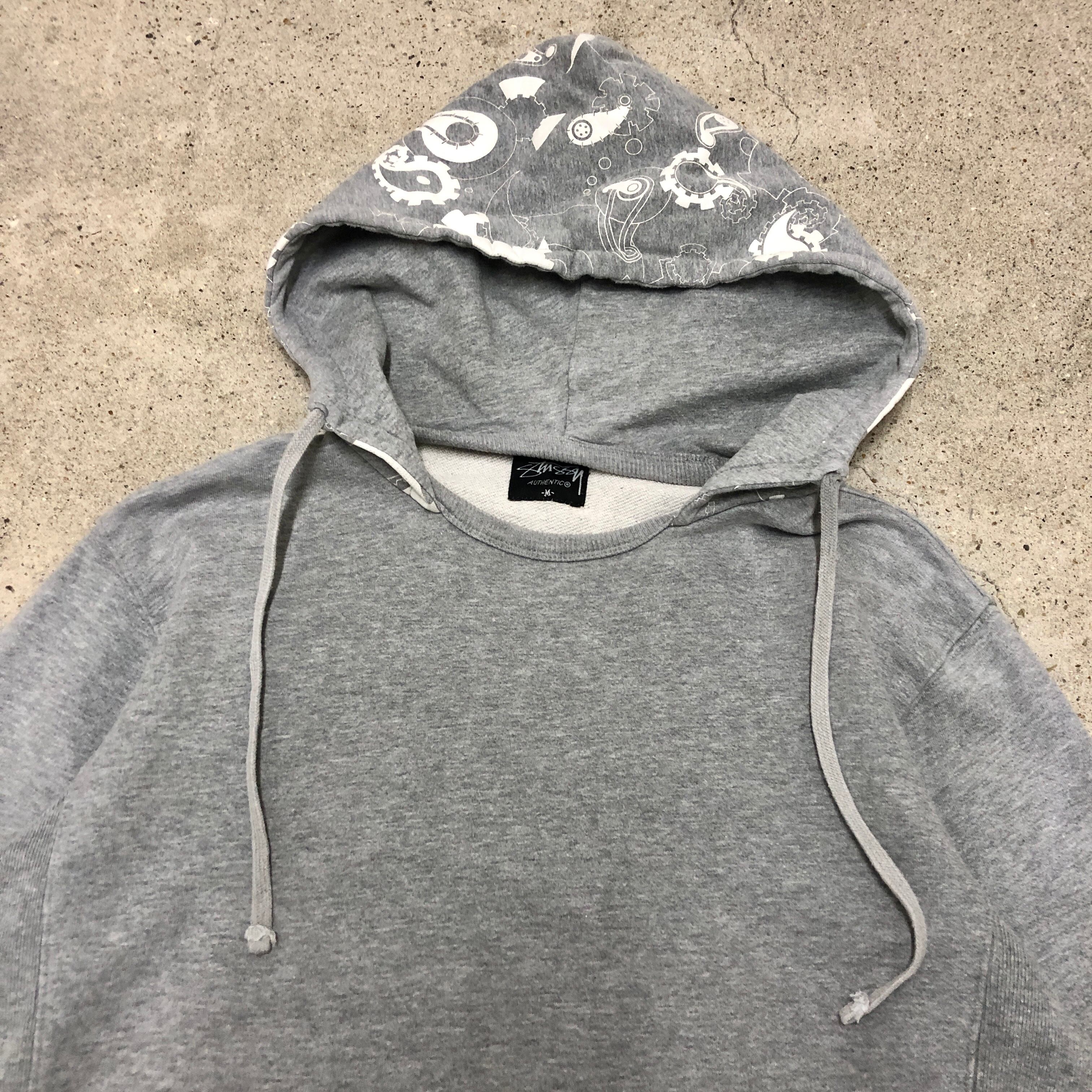 STUSSY/Pullover Hoodie/M/プルオーバーフーディ/パーカー/ペイズリー/歯車/総柄/グレー/ステューシー/ストリート/古着/中古