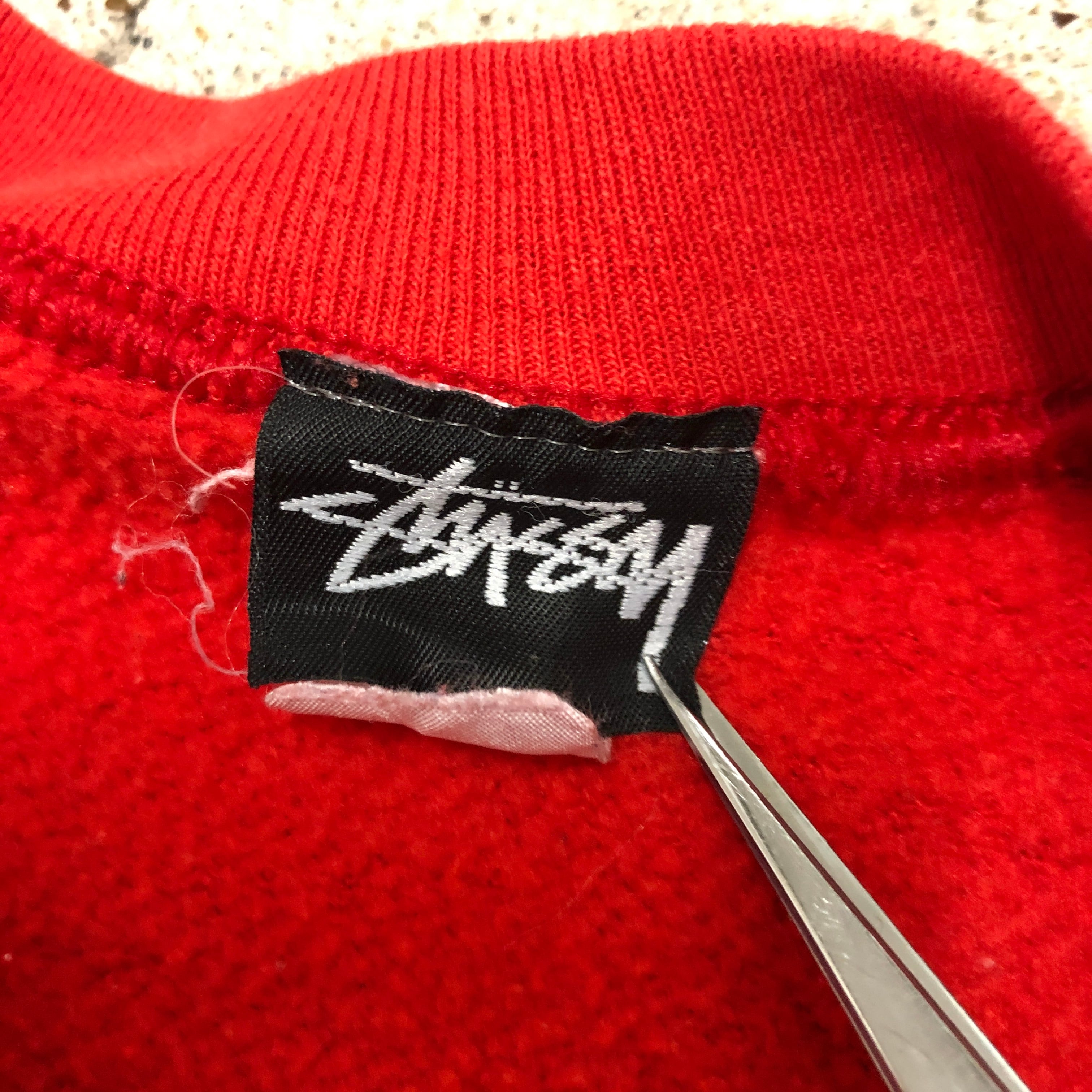 80s OLD STUSSY/Logo print Sweat/USA製/黒タグ/2枚タグ/ロゴプリントスウェット/レッド/ステューシー/オールドステューシー