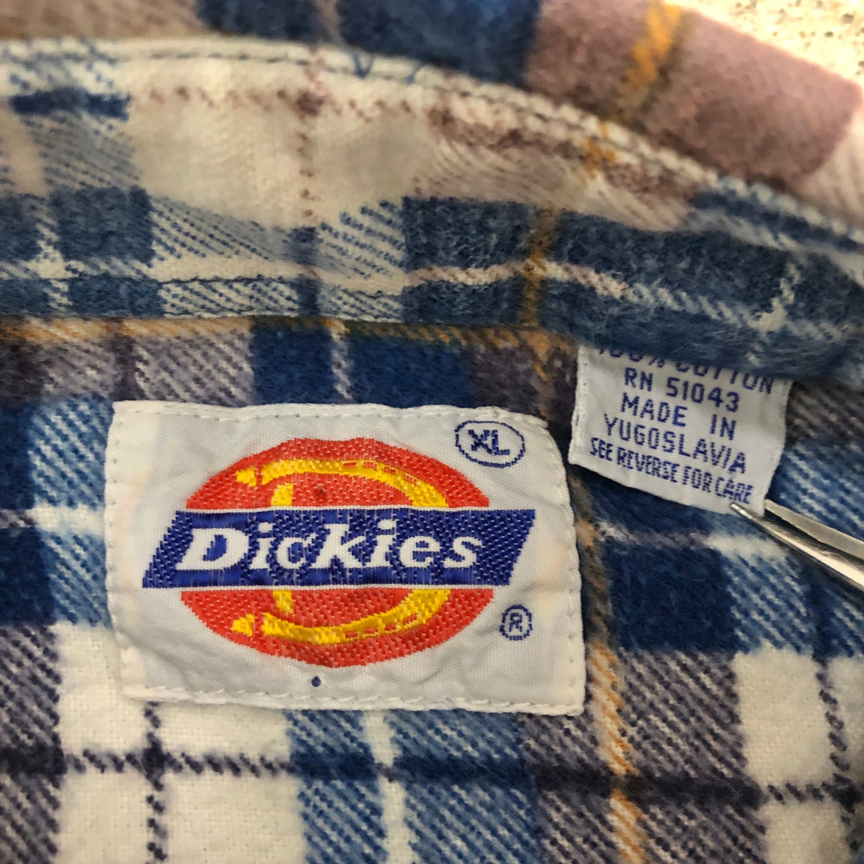80s Dickies/Flannel Shirt/白タグ/XL/チェック柄ネルシャツ/長袖シャツ/ブルー/ユーゴスラビア製/ディッキーズ