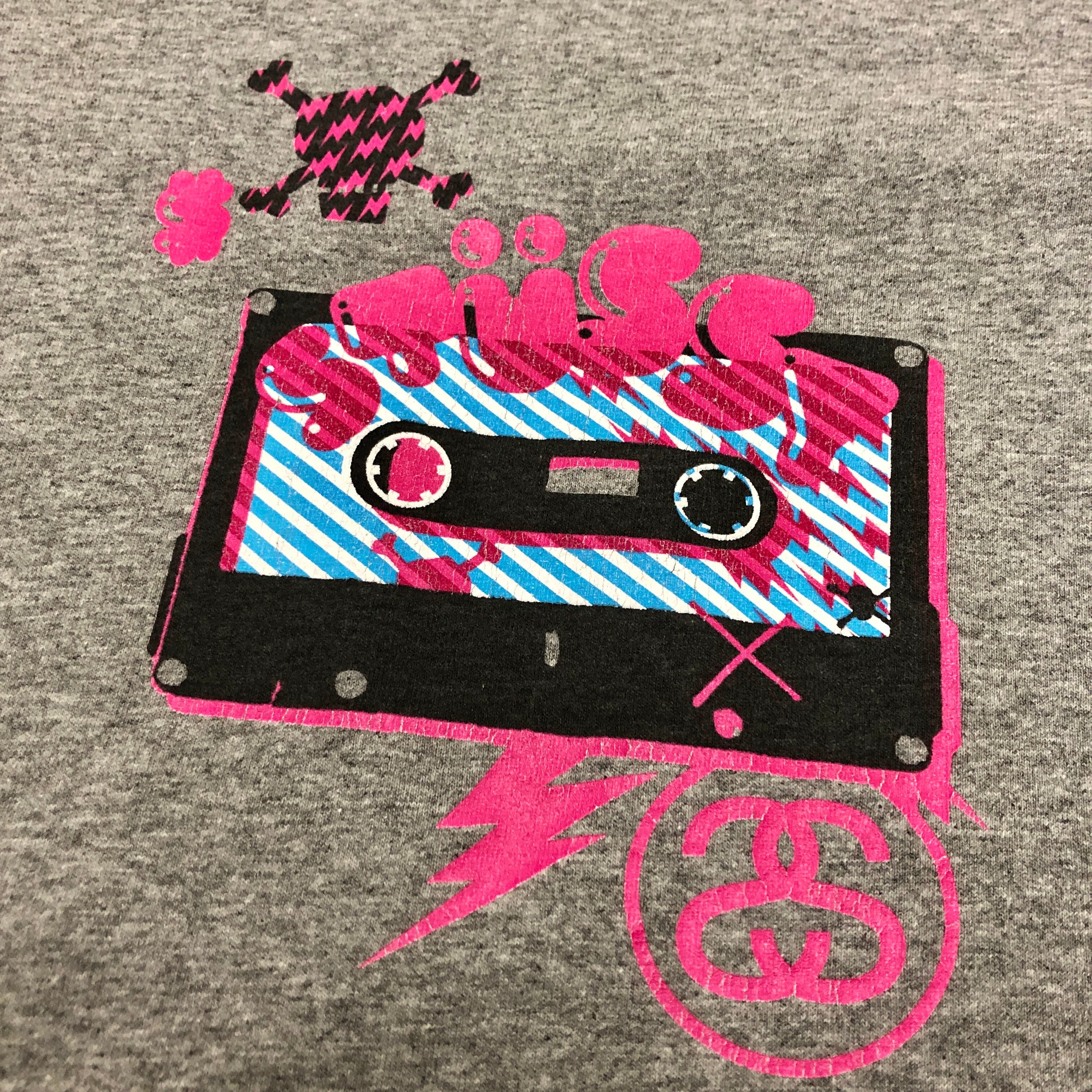 00s OLD STUSSY/Logo print L/S Tee/L/ロゴプリント/ロンT/スカル/SSリンク/グレー/ステューシー/オールドステューシー