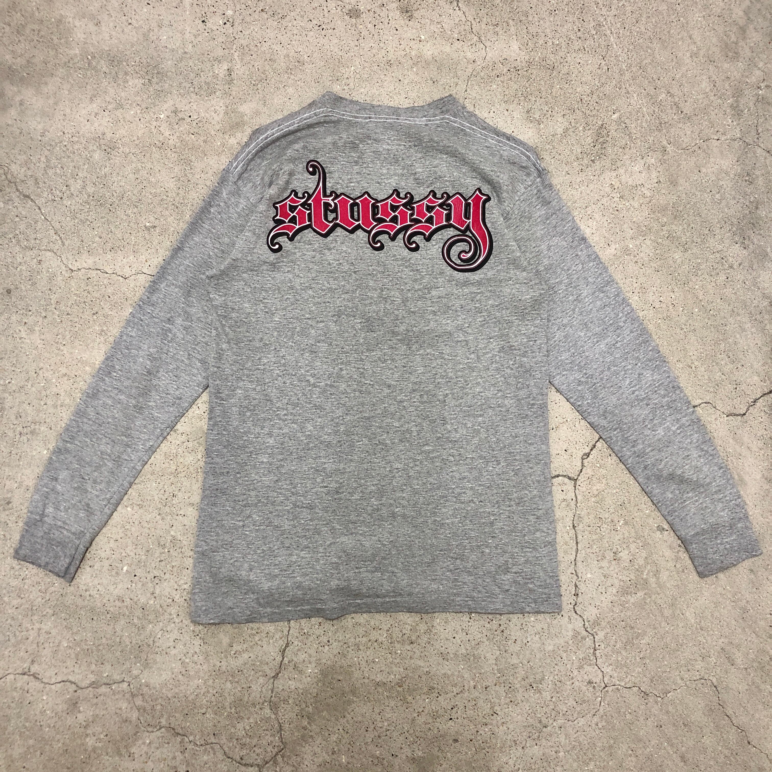 00s OLD STUSSY/Logo print L/S Tee/M/ロゴプリント/ロンT/オールドイングリッシュロゴ/グレー/ステューシー/オールドステューシー/古着/ヴィンテージ/アーカイブ