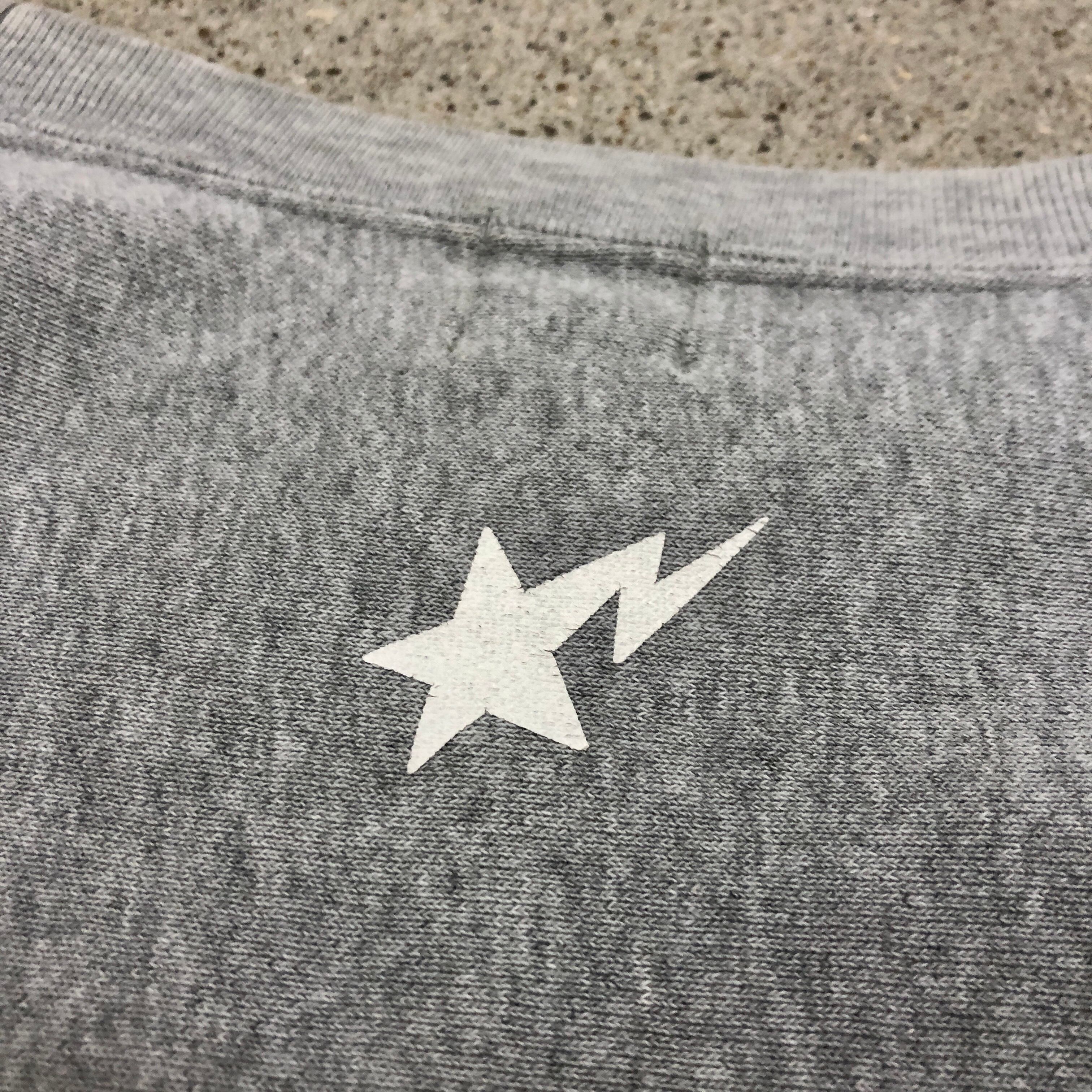 90~00s A BATHING APE/BAPE STA print Sweat/初期タグ/L/ベイプスタプリント/袖プリ/スウェット/グレー/BAPE/アベイシングエイプ
