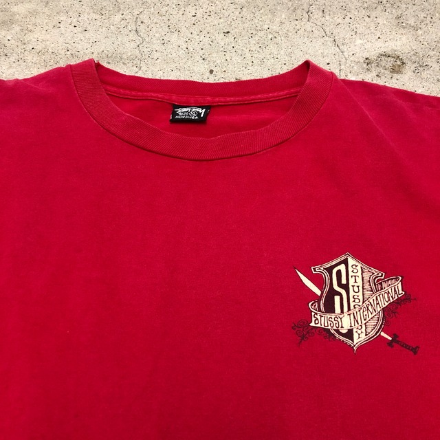 80~90s OLD STUSSY/Logo print Tee/USA製/黒タグ/XL/プリントTシャツ/レッド/ステューシー/オールドステューシー/古着/ヴィンテージ/アーカイブ