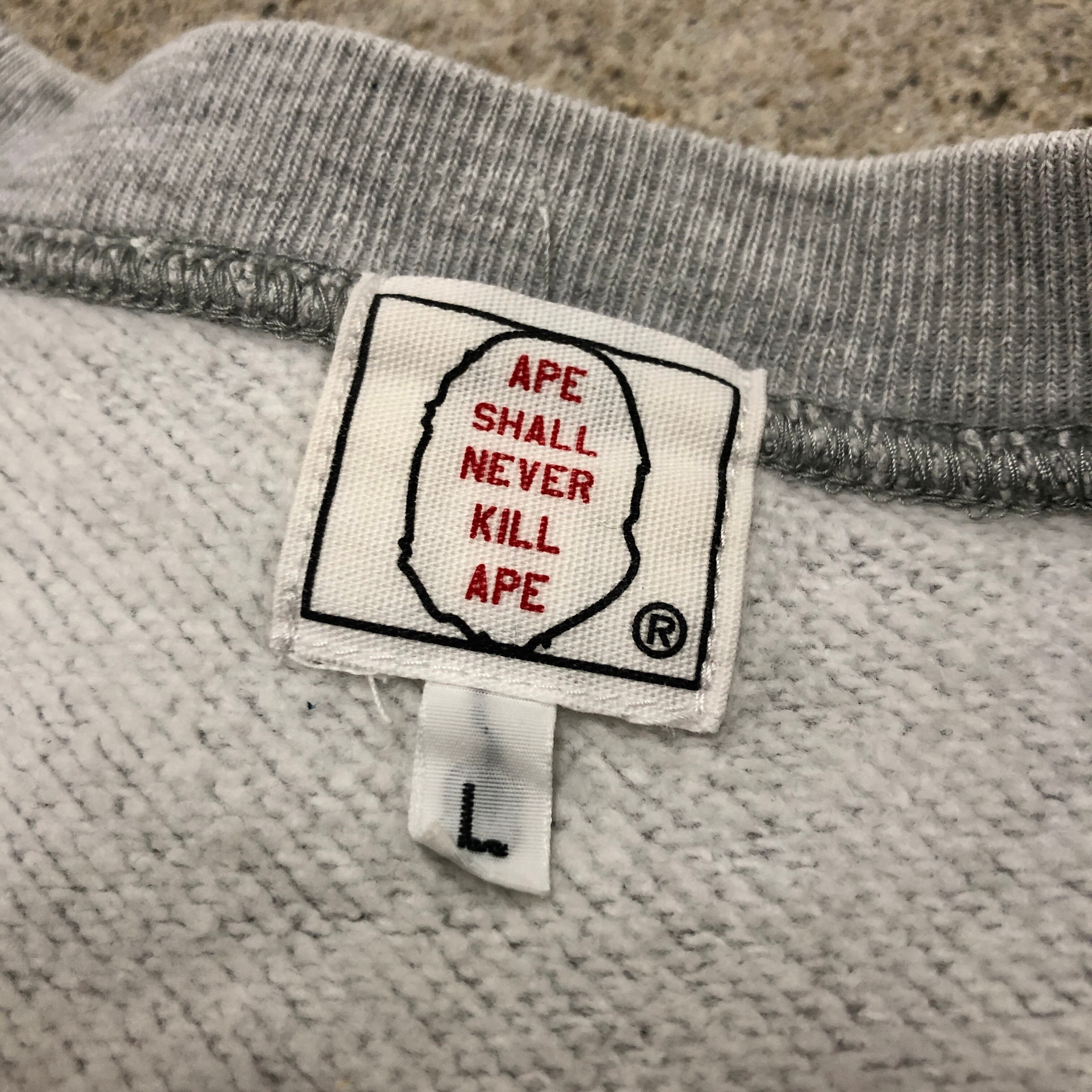 90~00s ABATHING APE/Big Face Logo print S/S Sweat/初期タグ/L/ロゴプリント/半袖スウェット/グレー/BAPE/アベイシングエイプ/裏原/古着/アーカイブ