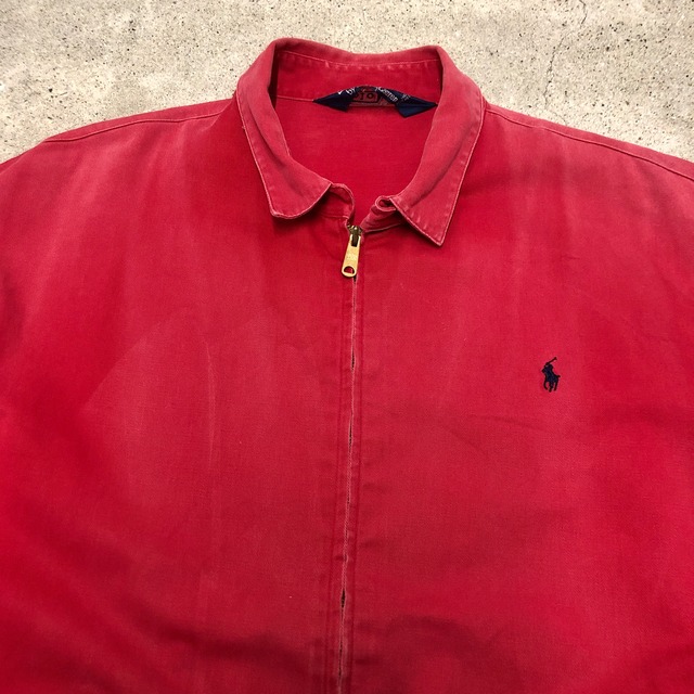 90s POLO RALPH LAUREN/Swing Top Jacket/Canada製/L/三角タグ/スイングトップジャケット/レッド/ポニーロゴ/刺繍ロゴ/ポロラルフローレン