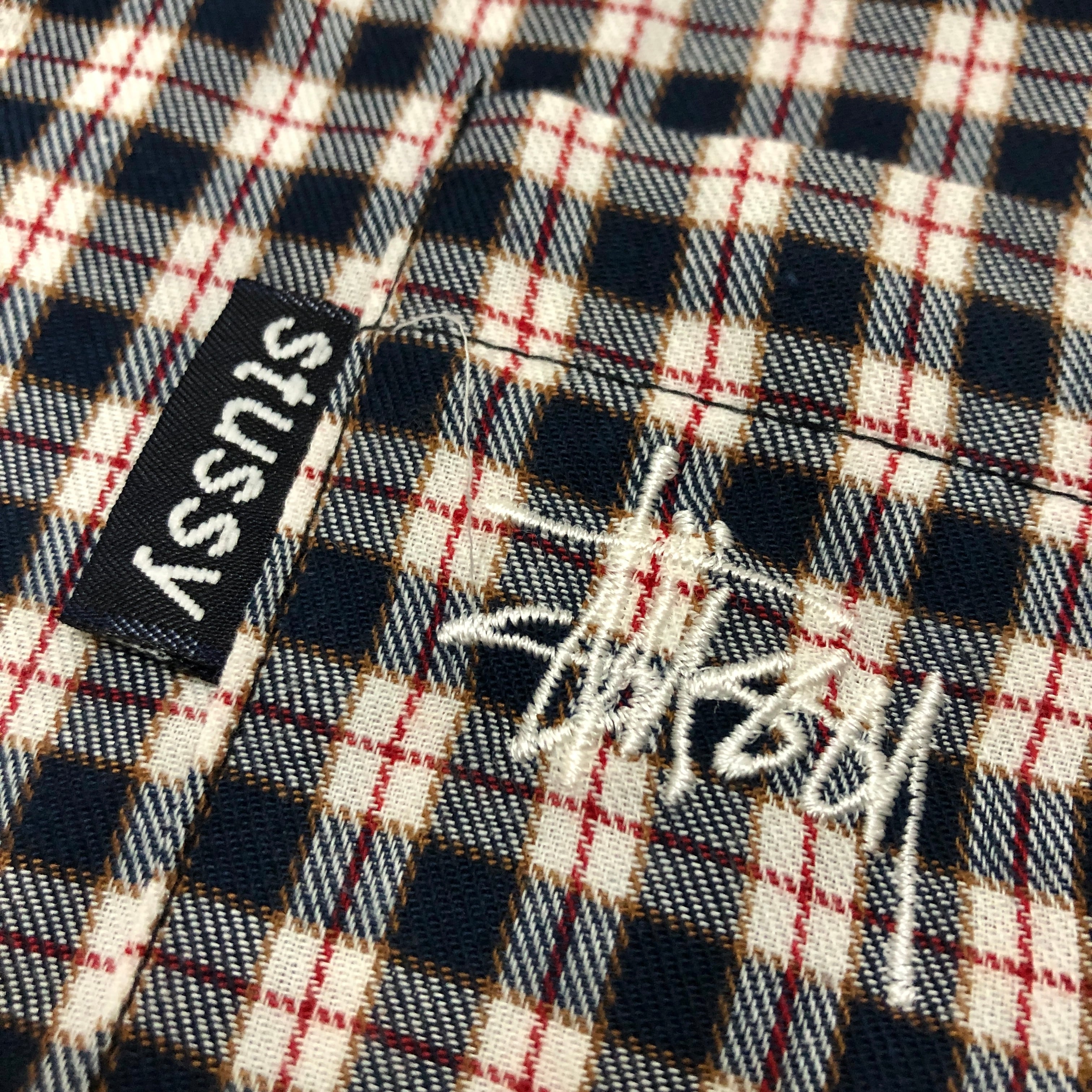 90~00s OLD STUSSY/Check BD L/S Shirt/紺タグ/Designed by USA/L/チェック柄/ボタンダウンシャツ/長袖/ネイビー/ステューシー/オールドステューシー