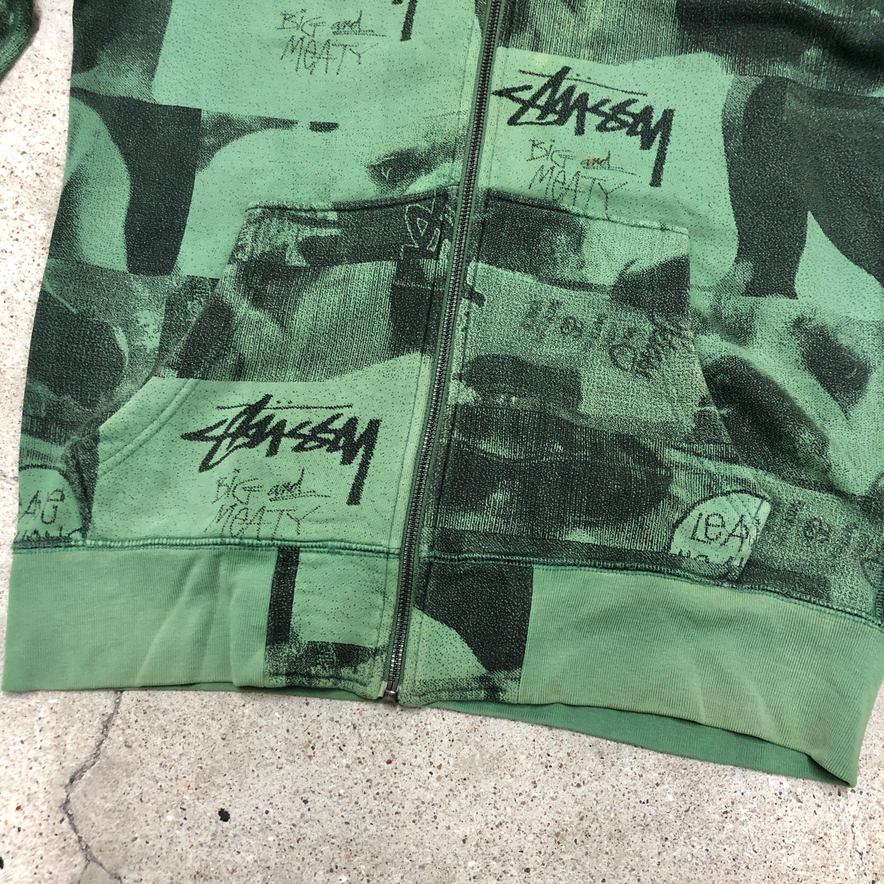 00~10s STUSSY/Multi print zip up Hoodie/M/マルチプリント/総柄/ジップパーカー/フーディー/グリーン/ステューシー/古着/アーカイブ
