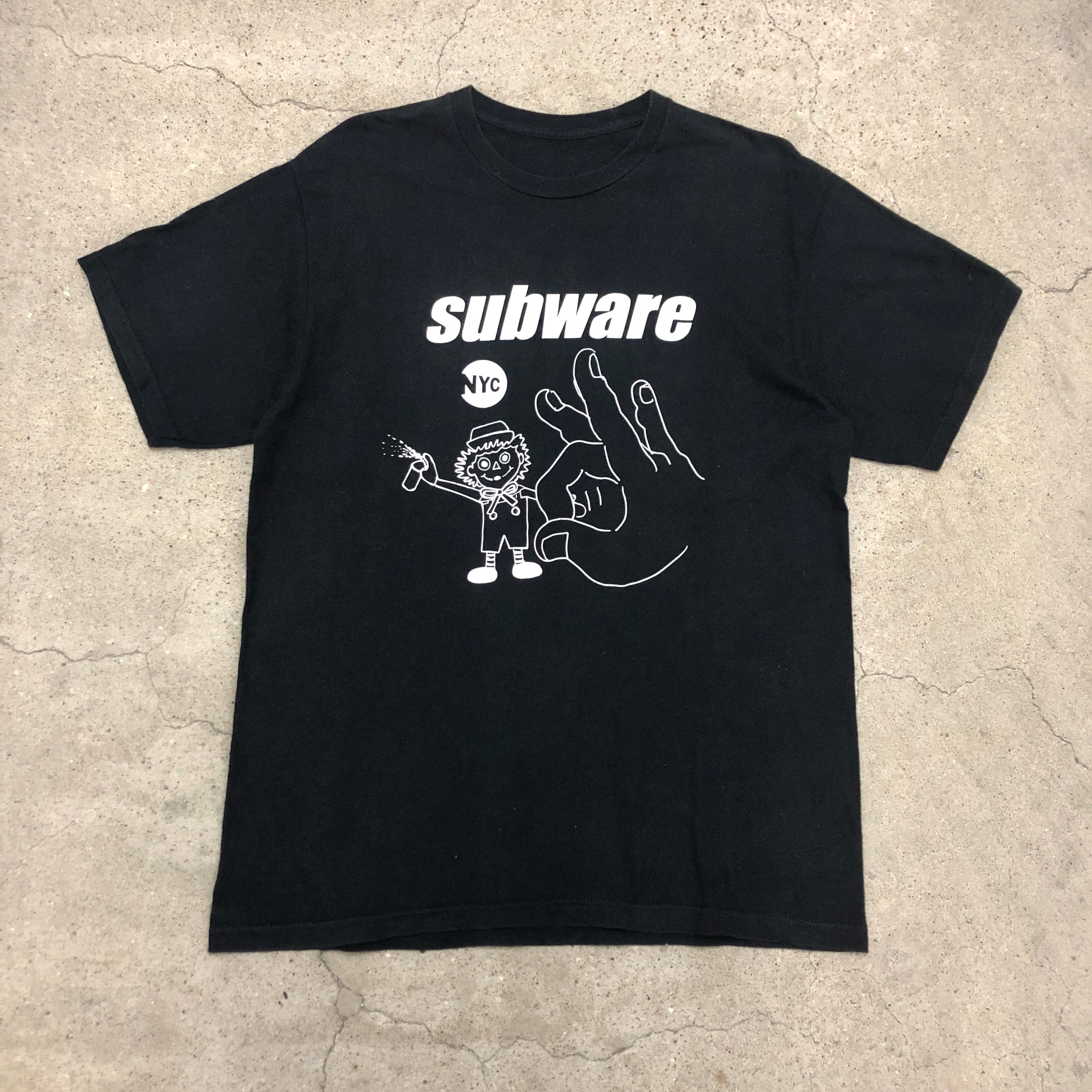 SUBWARE/Logo print Tee/L/ロゴプリントT/Tシャツ/USA製/復刻モデル/ブラック/両面プリント/サブウェア/STASH/RECON/FUTURA/グラフィックデザイナー/裏原/古着
