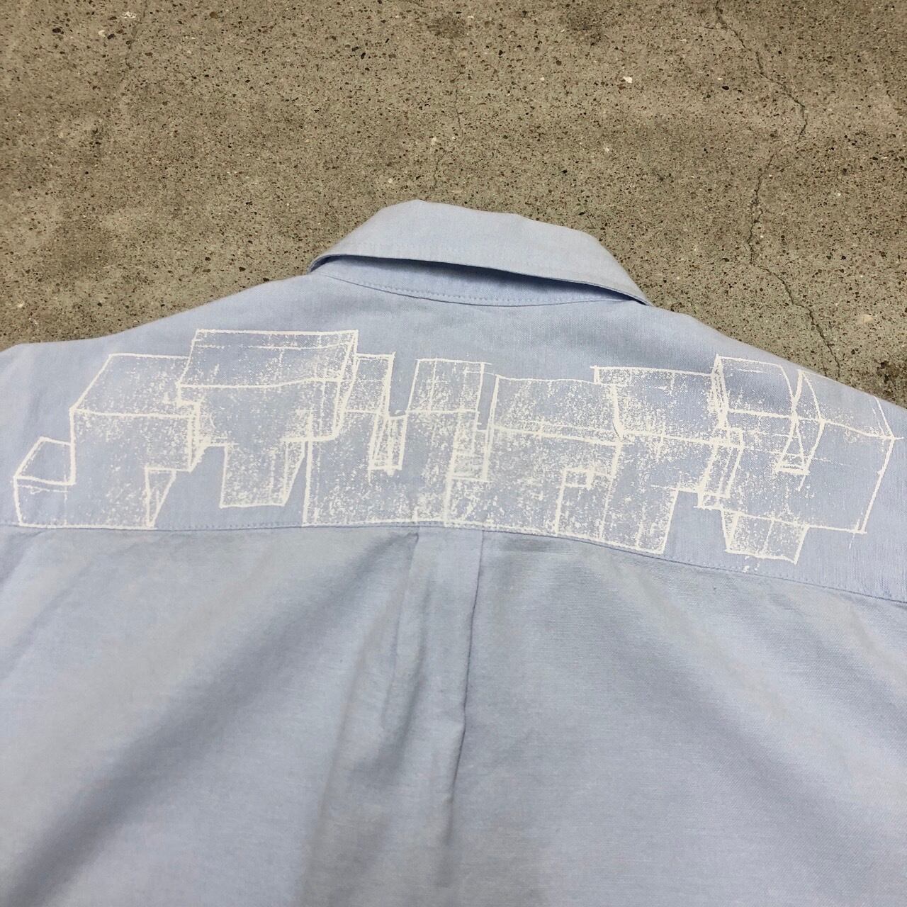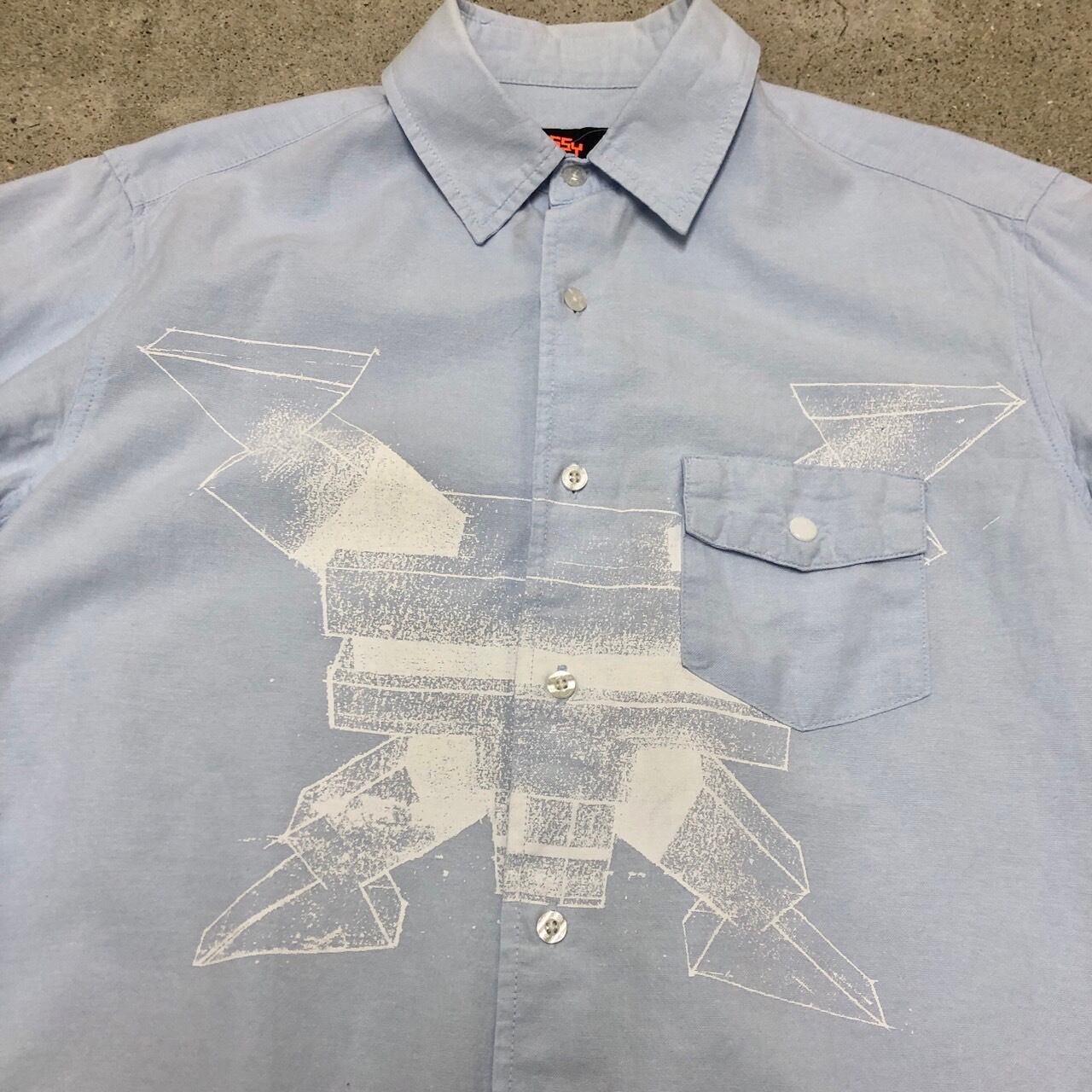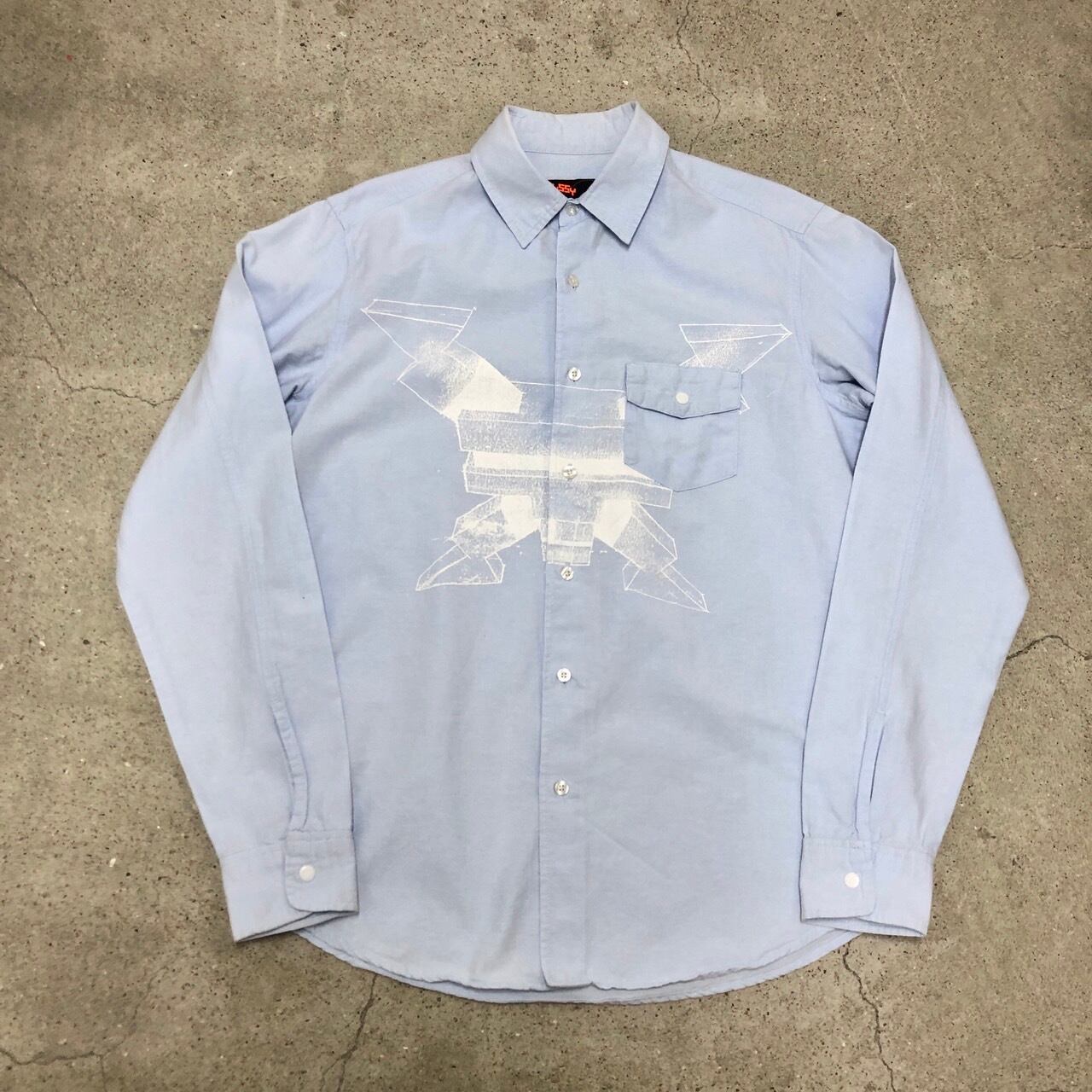 STUSSY × Boris Tellegen/DELTA/Oxford Shirt/M/ロゴプリント/長袖シャツ/オックスフォードシャツ/アイスブルー/ステューシー/コラボ/古着/アーカイブ