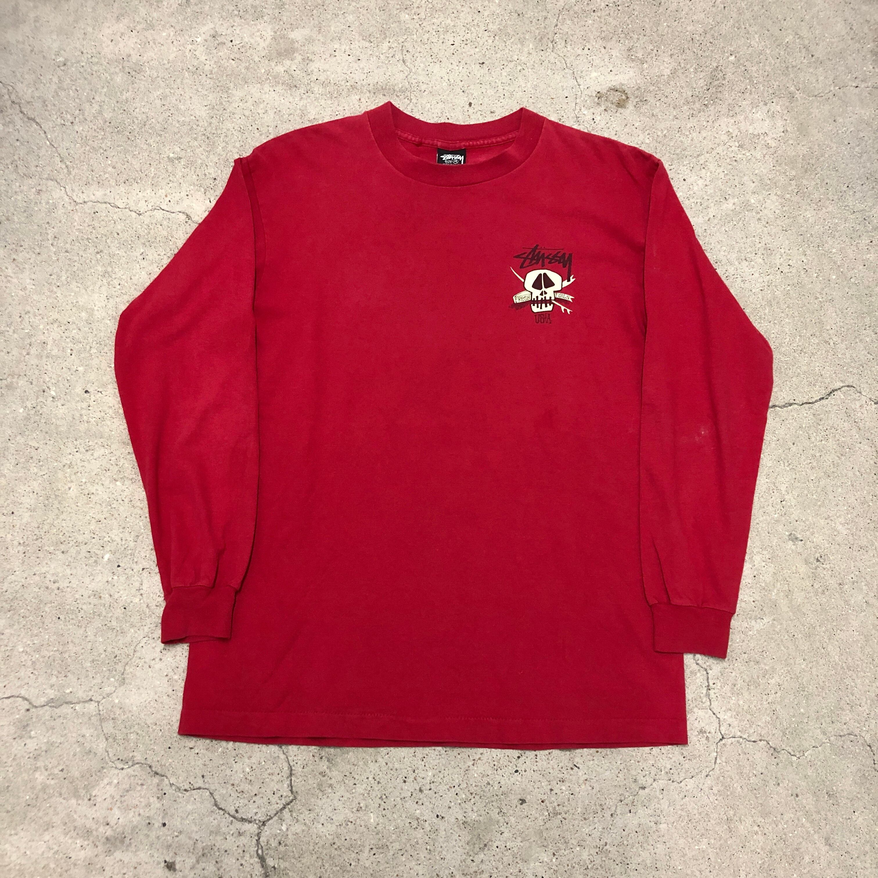 90s OLD STUSSY/Skull print L/S Tee/USA製/黒タグ/M/スカルプリント/ロンT/長袖Tシャツ/レッド/ステューシー/オールドステューシー/古着/ヴィンテージ/アーカイブ